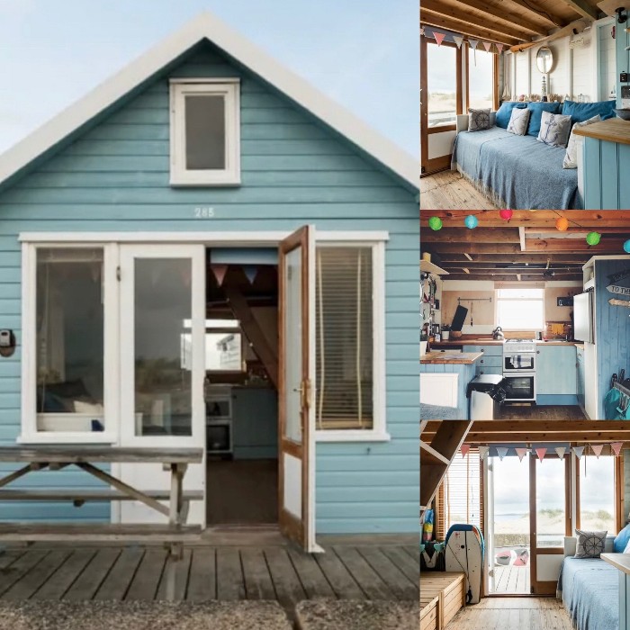 The hut includes four chairs and a small table, a wind breaker, glasses, cups, plates, and cutlery, buckets, and spades. There is a camping gaz stove and kettle, but coffees and food are available from the café (the café doesn’t’ have an alcohol licence).