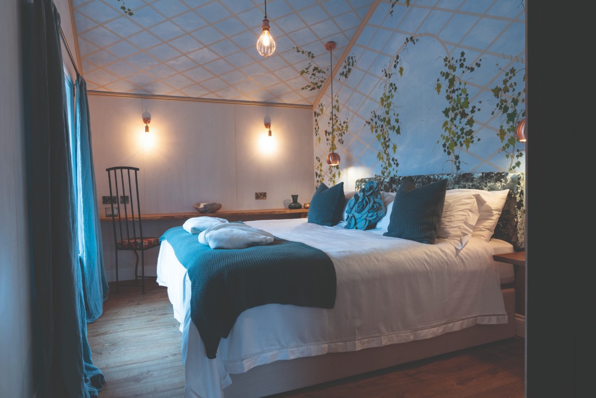 Hugo Dalton was inspired to mural the lounge wall, opening out onto the magical terrace and garden perfect for sketching faeries, writing novellas or simply sipping a glass of Pinot.