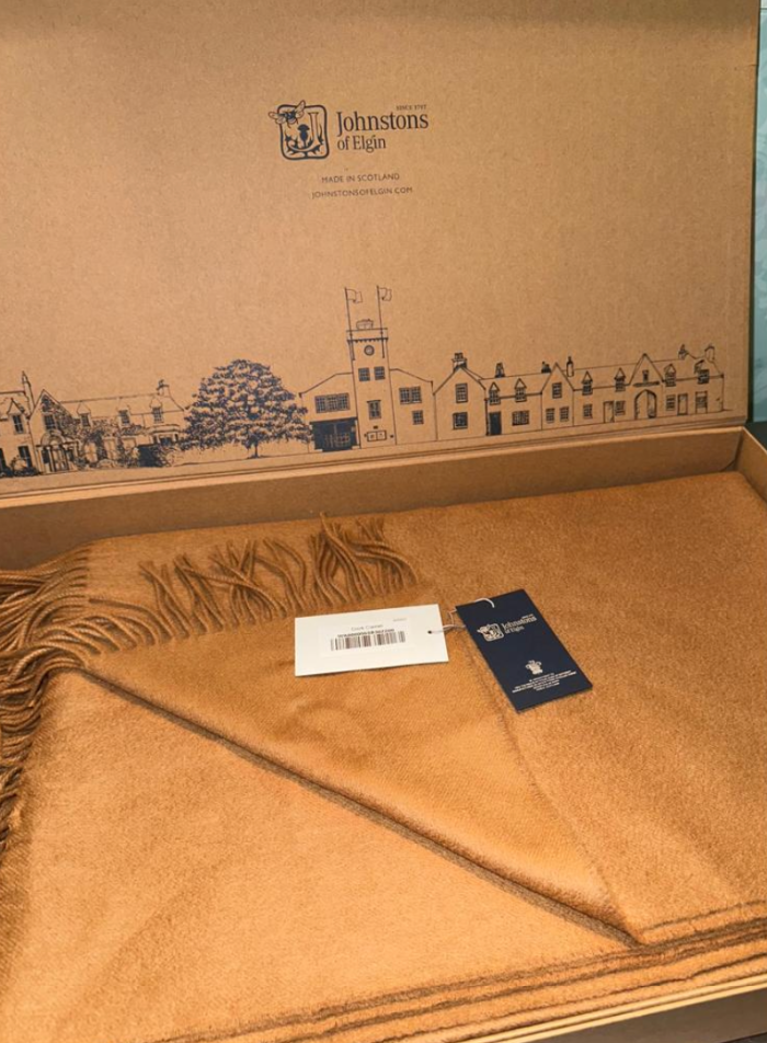 Beautiful Johnstons of Elgin Dark Camel Cashmere Blanket