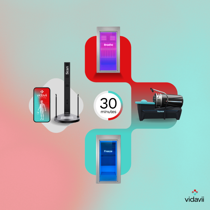 The Vidavii Circuit is a holistic system that promotes balance, vitality, and a unique wellness experience. This unique experience promises not just instant relief and relaxation, but a lasting improvement in your overall health and vitality. The circuit includes a cutting-edge 3D body scan, Infrared Light & Ionised Oxygen Chamber session, Flow System lymphatic massage with a cryo chamber blast to finish.