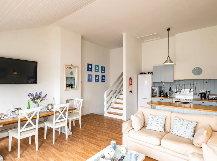 Sleeping 8 guests in 4 bedrooms with 2 bathrooms, Slipway 12 has accommodation set over three floors and has been thoughtfully designed to enable the first floor living area to take full advantage of the stunning views of the Camel estuary. The bedrooms are all attractively furnished and have pretty homely touches, which create peaceful relaxing places to rest after a busy day on the beach or in the sea.