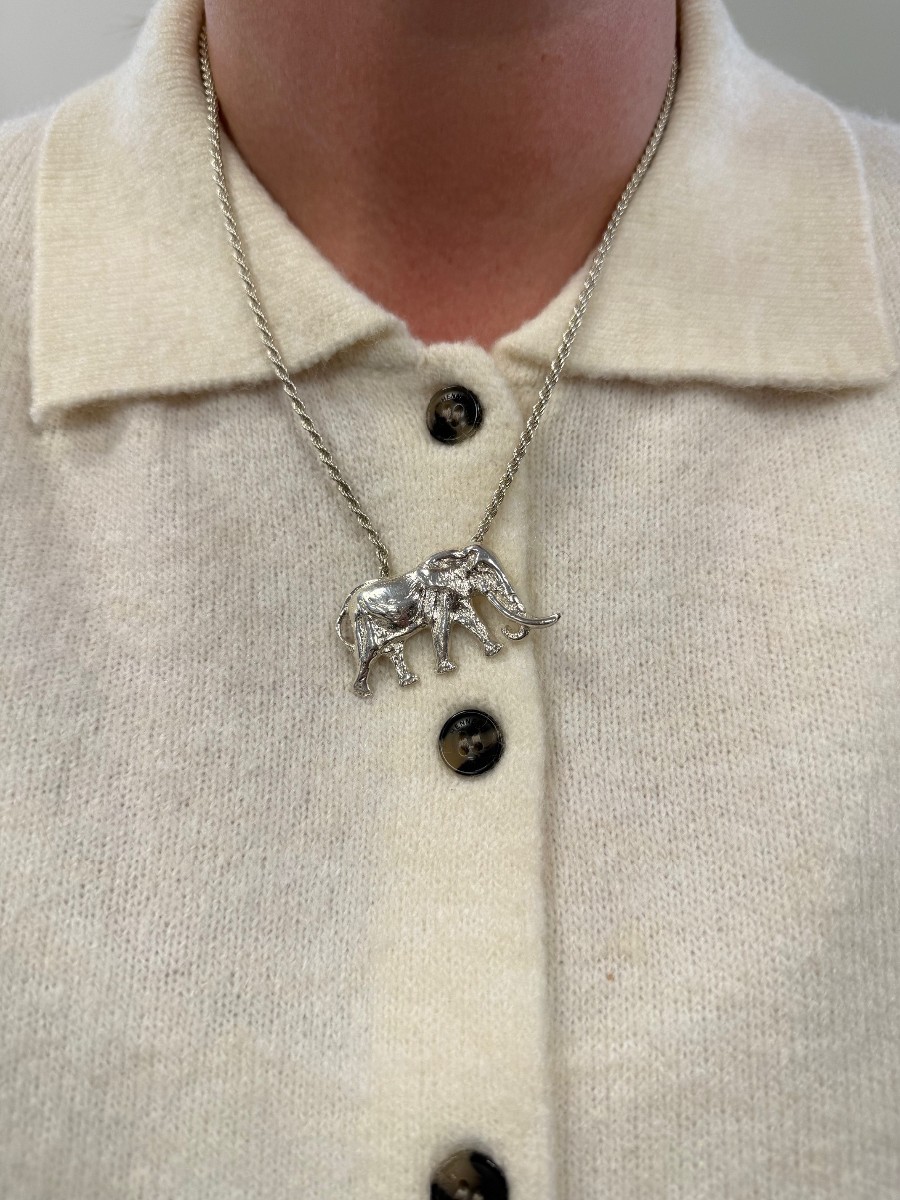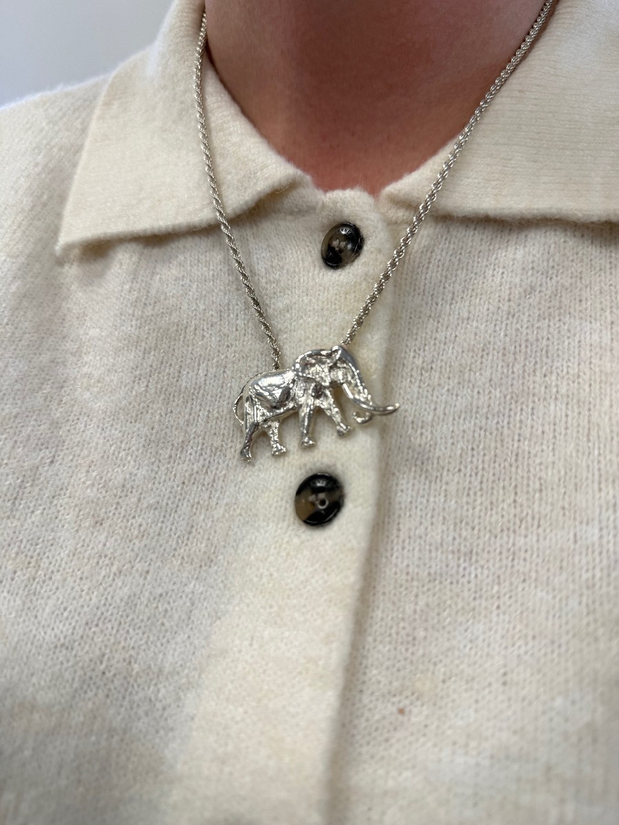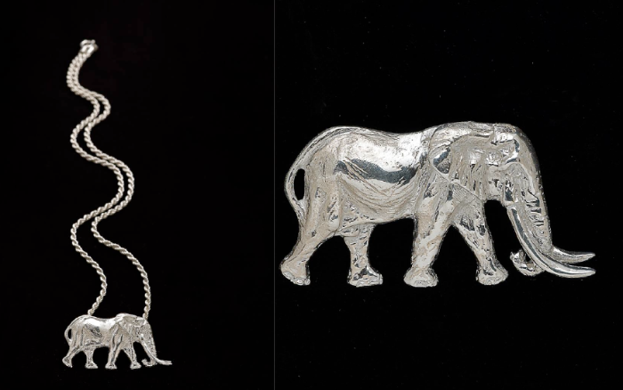 This limited edition silver portrait pendant was made in memory of Satao of Tsavo, who was possibly the largest ‘big tusker’ elephant remaining in Africa and tragically was poached for his ivory on May 30th 2014. There are only estimated to be around 12 big tuskers remaining in Tsavo. The work, sold as a necklace and brooch, has raised significant funds for elephant conservation in Kenya.
