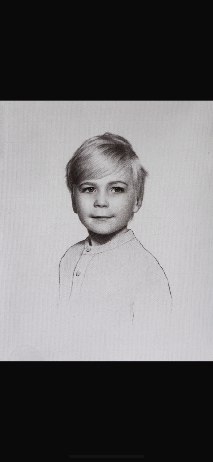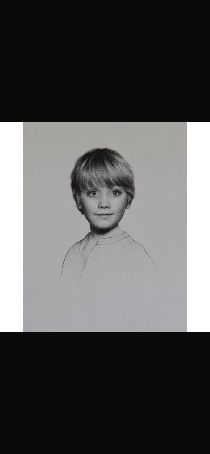 Life size head and shoulders portrait of your child or loved one or yourself by Max Baccanello. Charcoal on paper and drawn from a live sitting with further images taken by the artist. Unframed and for you to frame as you choose.