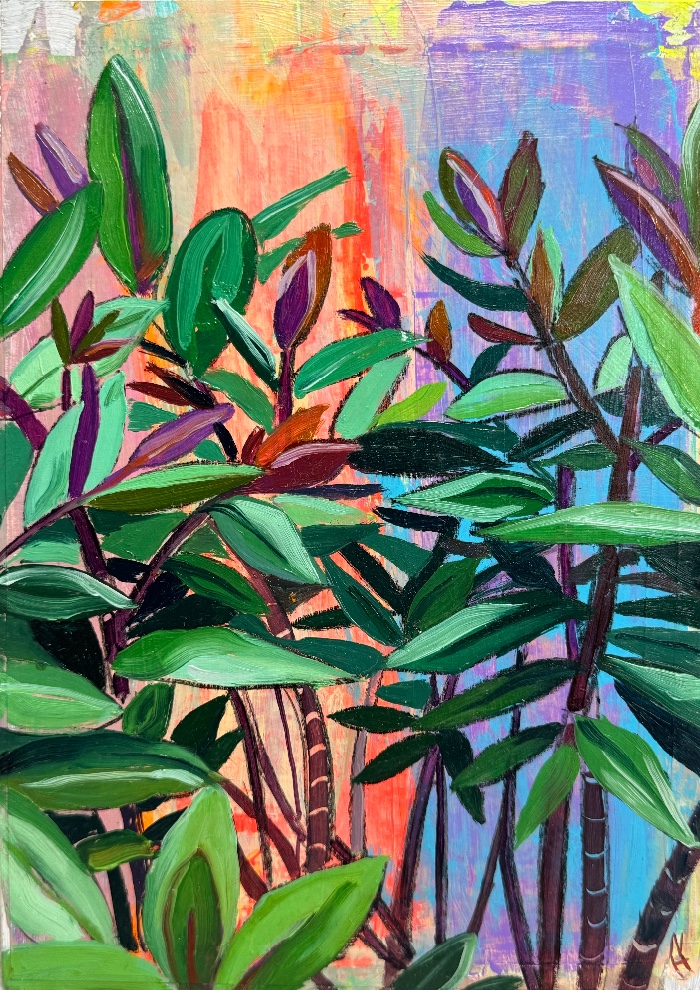 Plants from my balcony 29cm21cm oil and acrylic on board no frame