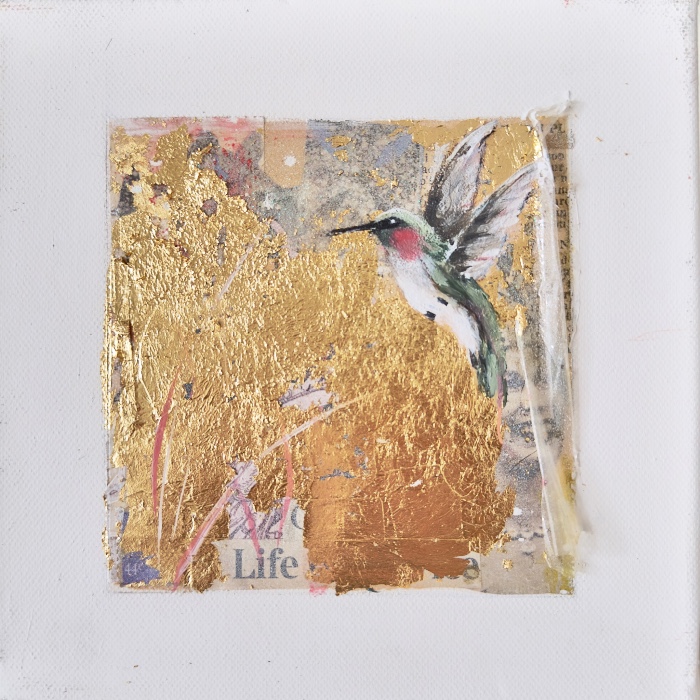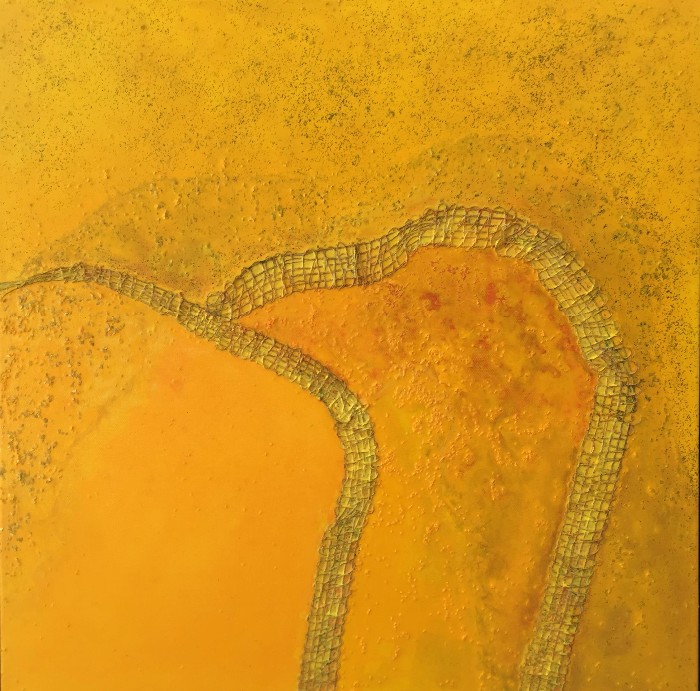 Acrylic and weave on canvas, framed. 50 x 50 cms. One of a series of three paintings .