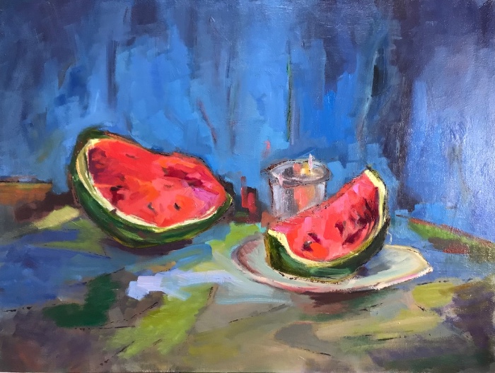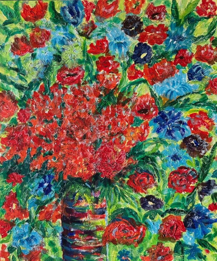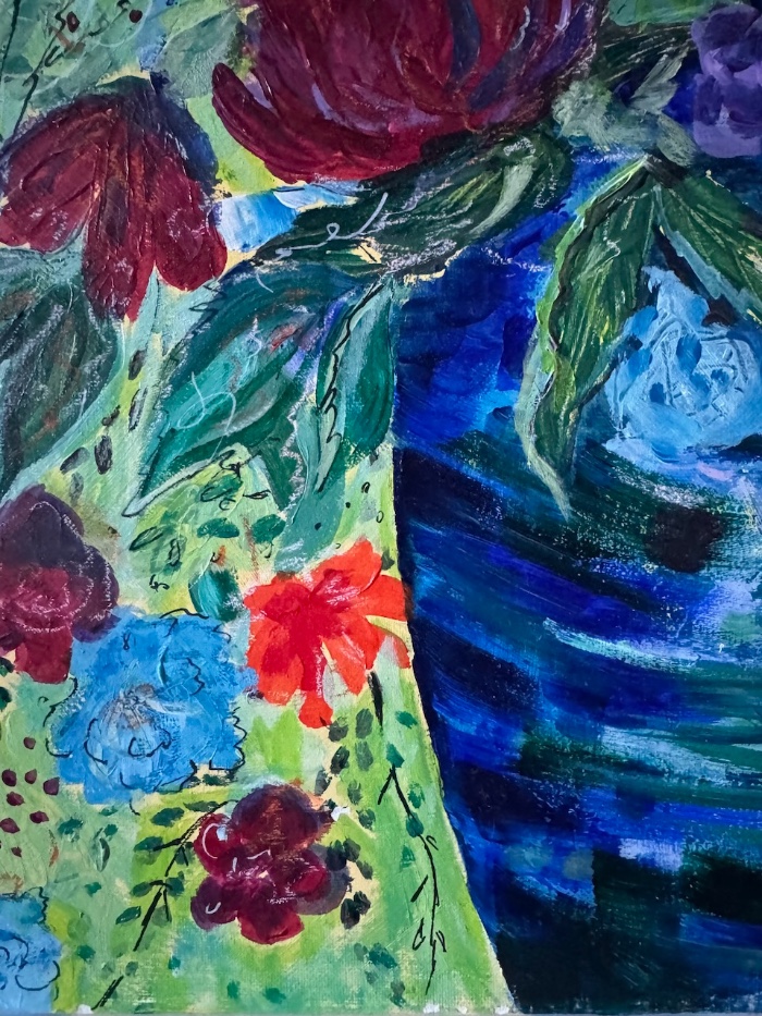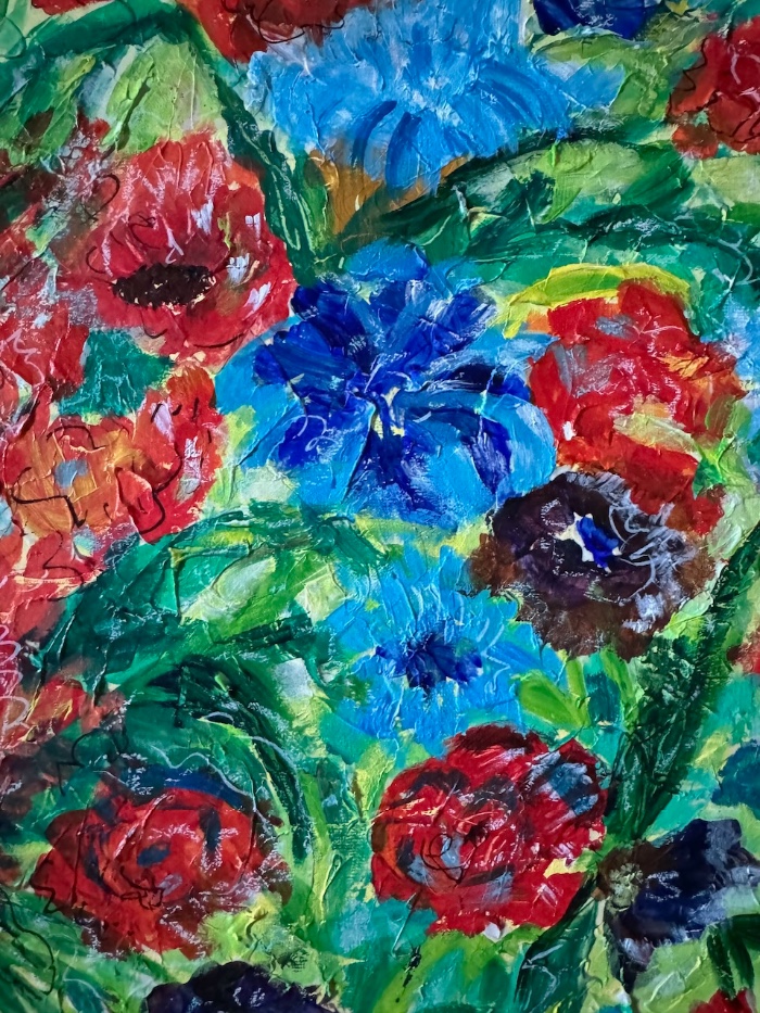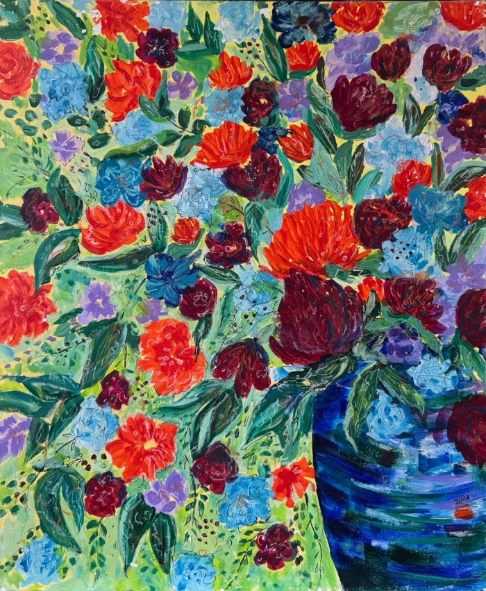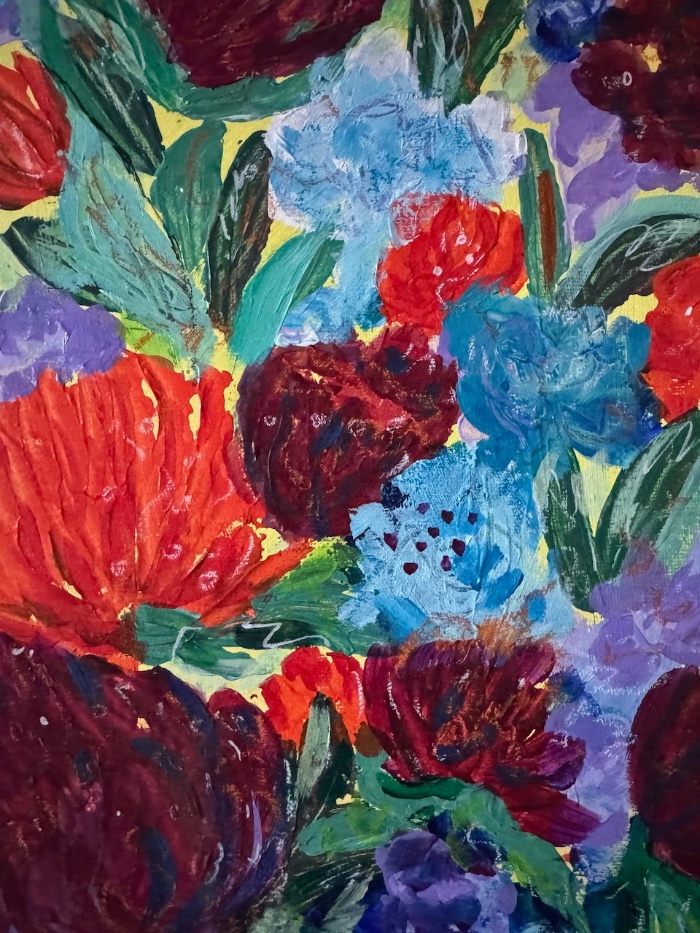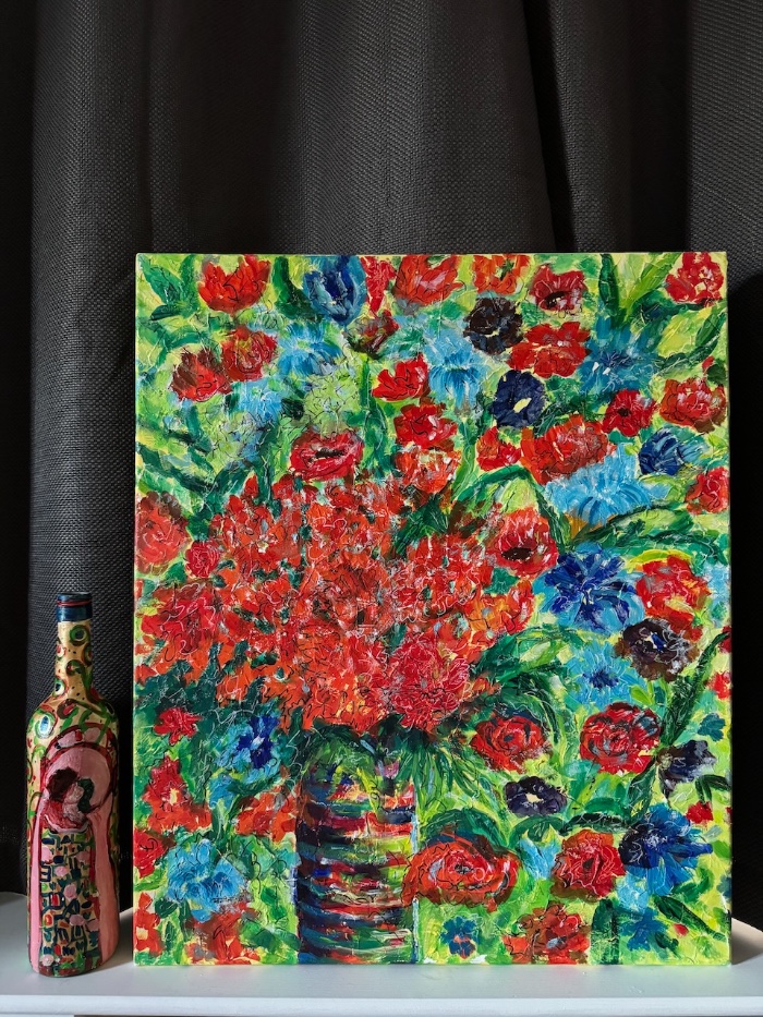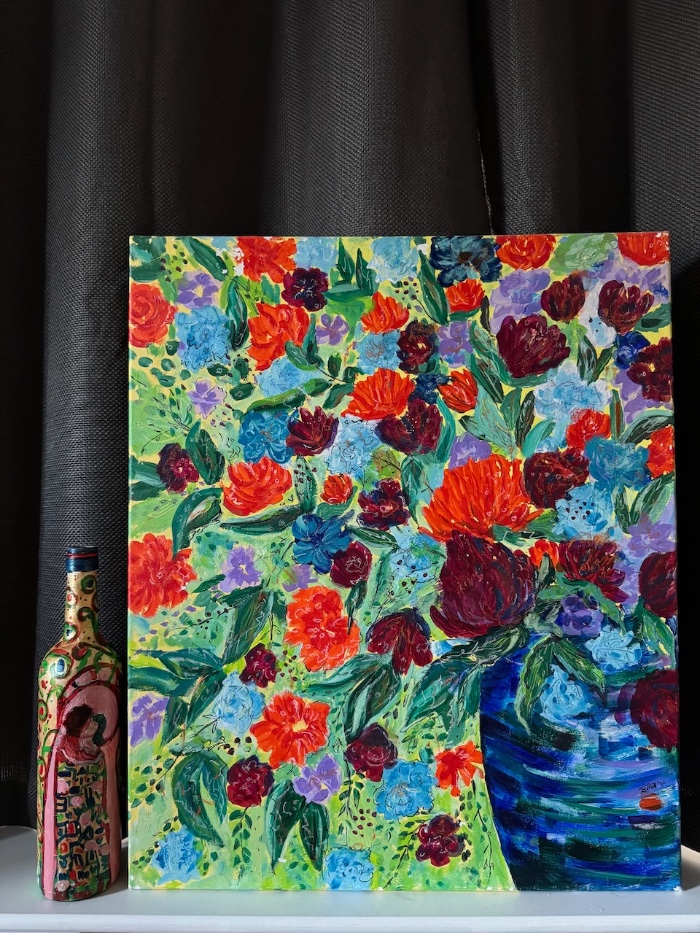 Acrylic on canvas, unframed. 40cm high x 30cm width x 2cm depth