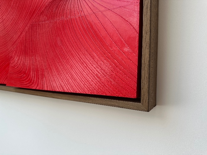 Unique abstract relief landscape, hand painted in French Polish for a stunning deep gloss and sharp details. Materials: PLA, Wood, French Polish Dimensions: 60 x 40 x 9cm (64 x 48 cm framed) Selling price 650£