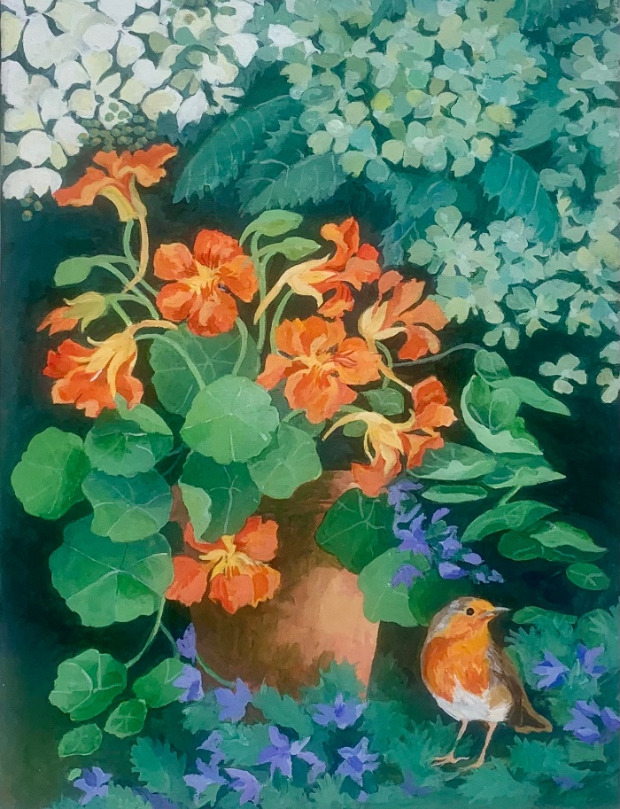 Nasturtiums and robin by Jennifer Abbott