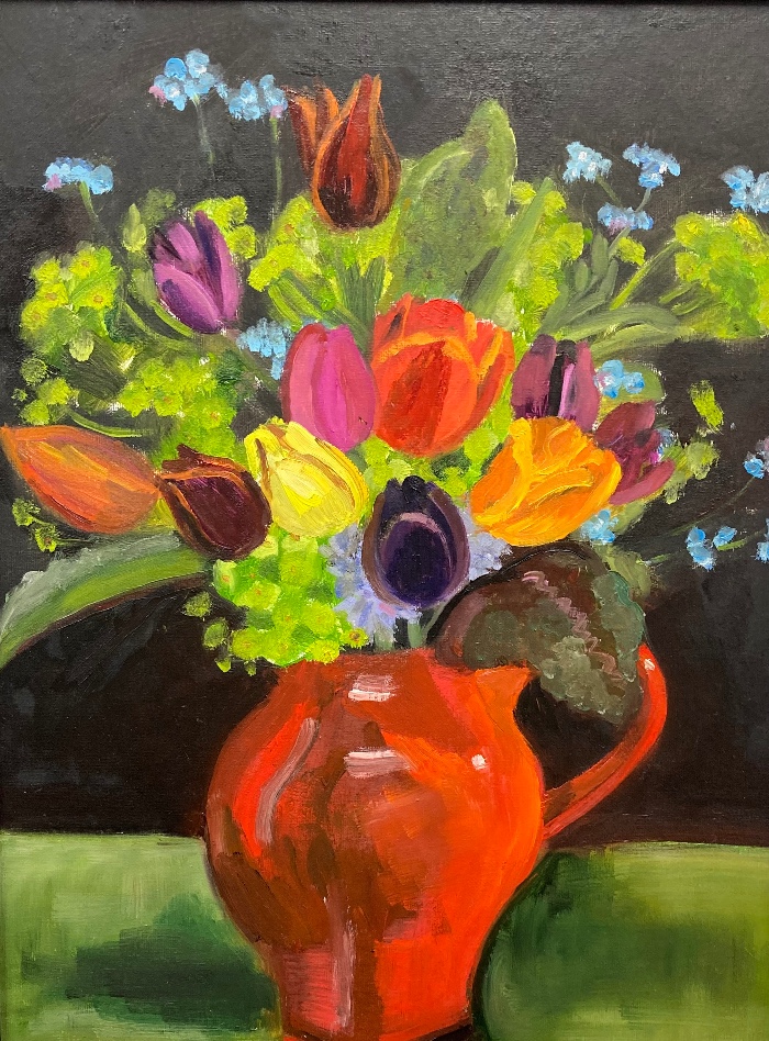 Tulips and forget-me-nots by Marcia Hurst