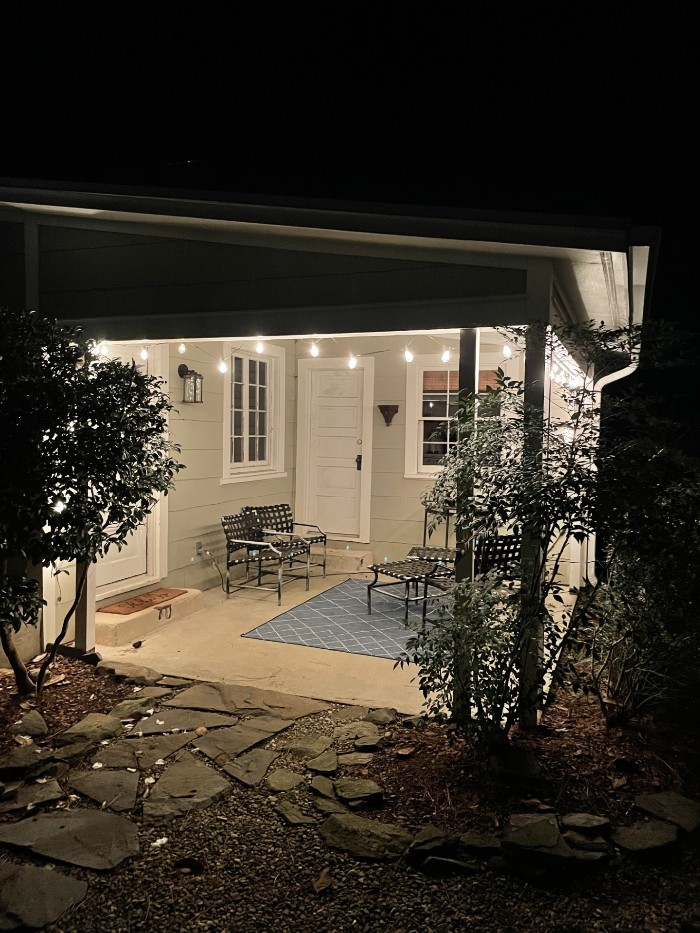 The back terrace is perfect for long leisurely dinners. There is both an outdoor grill and an outdoor shower.