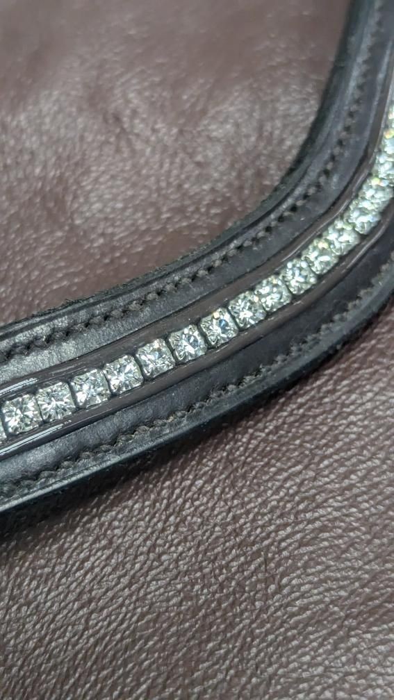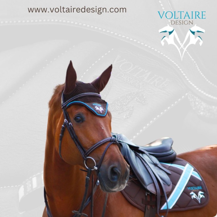A Voltaire Design anatomical hunter bridle with a noseband designed for the comfort of your horse at work. Designed for a chic look for any discipline with fancy stitched browband & noseband.