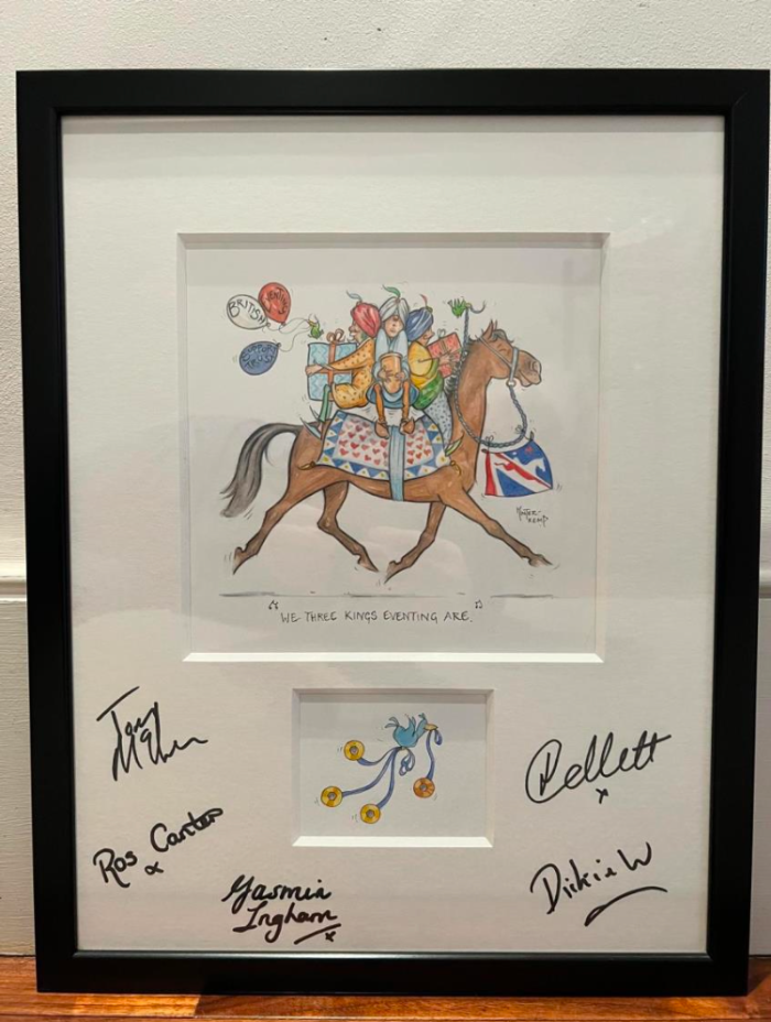 ‘We Three Kings Eventing Are’ Original art signed by Paris 2024 Olympians Ros Canter, Laura Collect, Tom McEwen, Yasmin Ingham & Richard Waygood