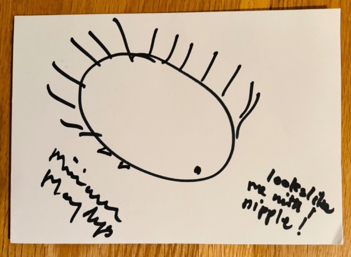 Suzi Ruffle is a well known comedian, writer, and actress. Currently on tour (do check her out you’ll have a great evening) . Suzi has drawn her #hogdoodle in her new book which is a Times bestseller. You can find her on instagram as well @suziruffellcomedy