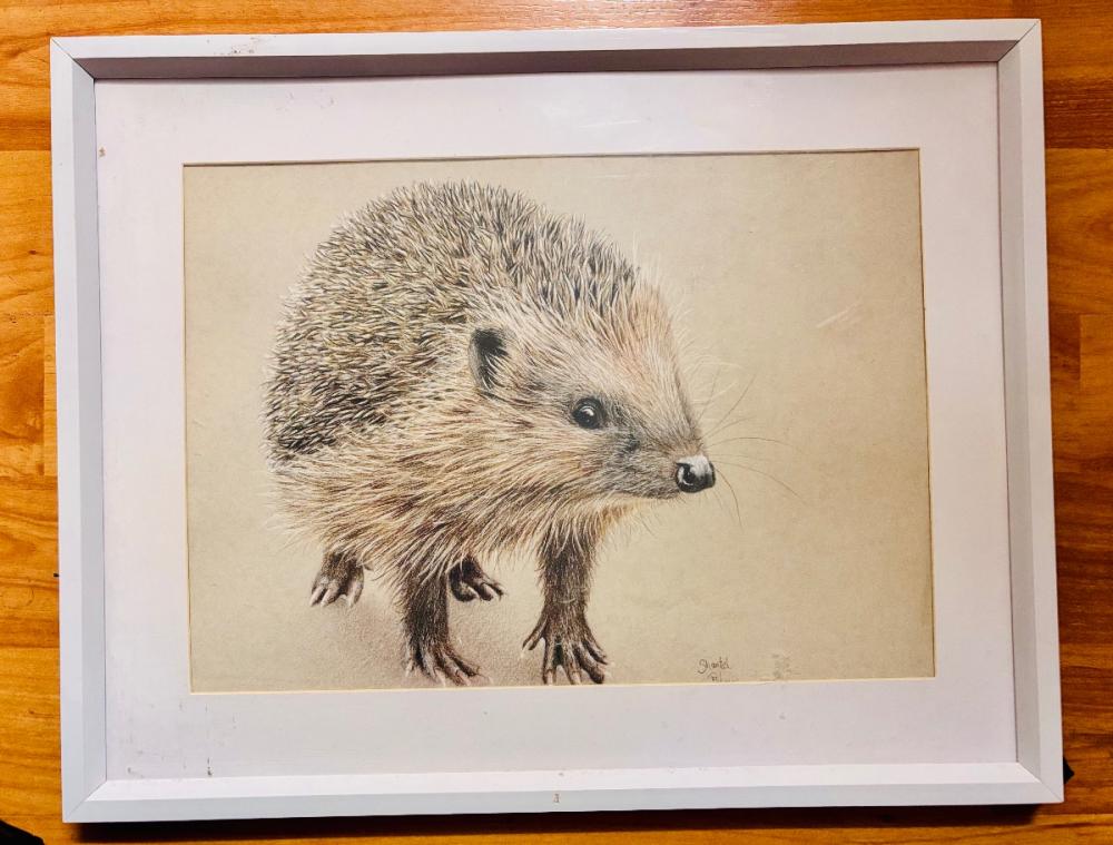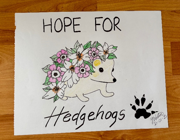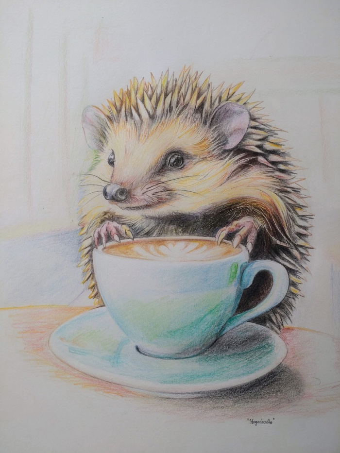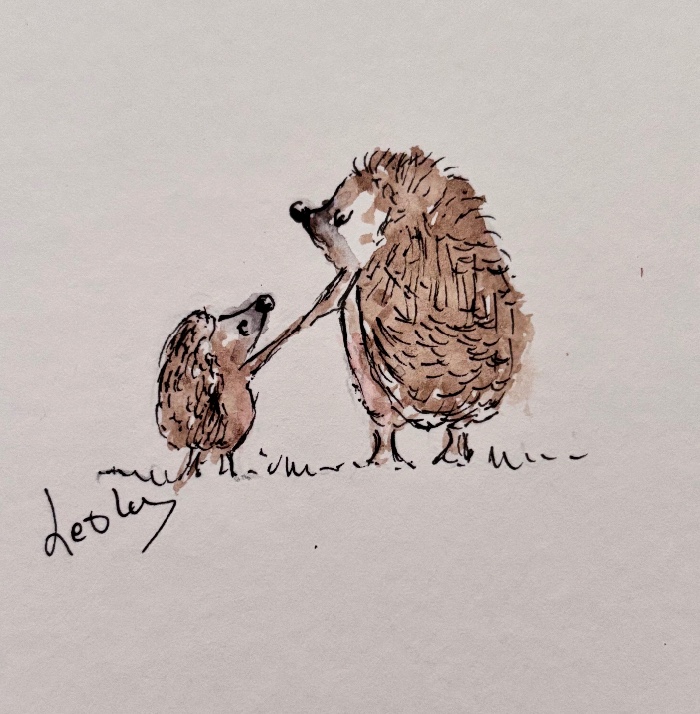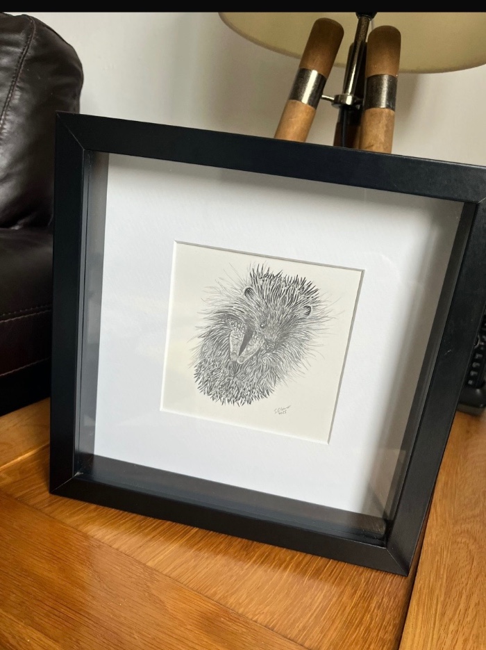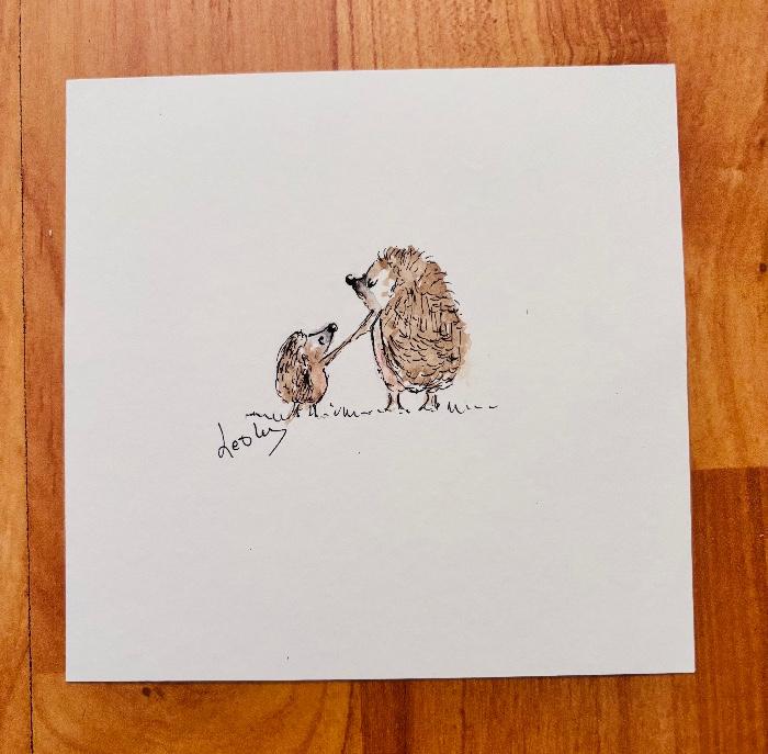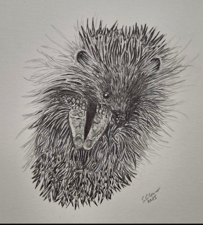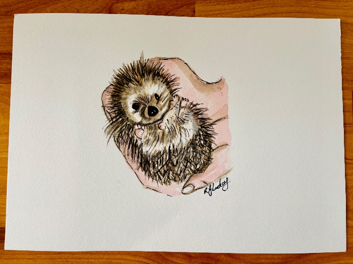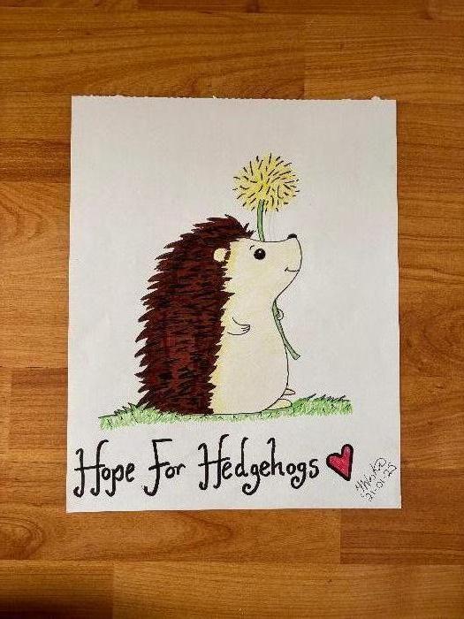 Hogdoodle by author & artist Sarah Glover. Sarah was inspired by one of the baby hedgehog cared for by Hope for hedgehogs for her drawing. Sarah can be found on Facebook and instagram with more of her beautiful artwork.