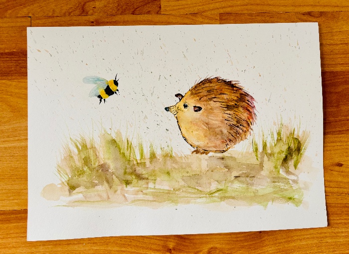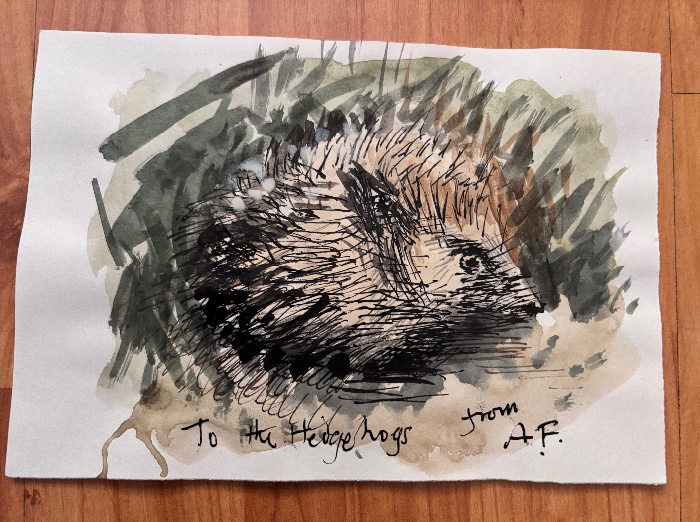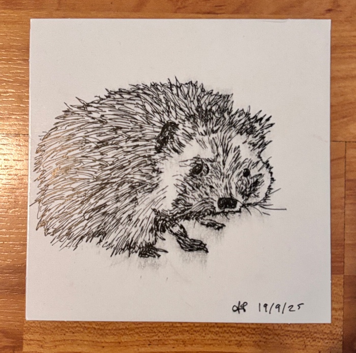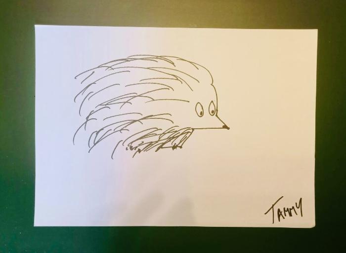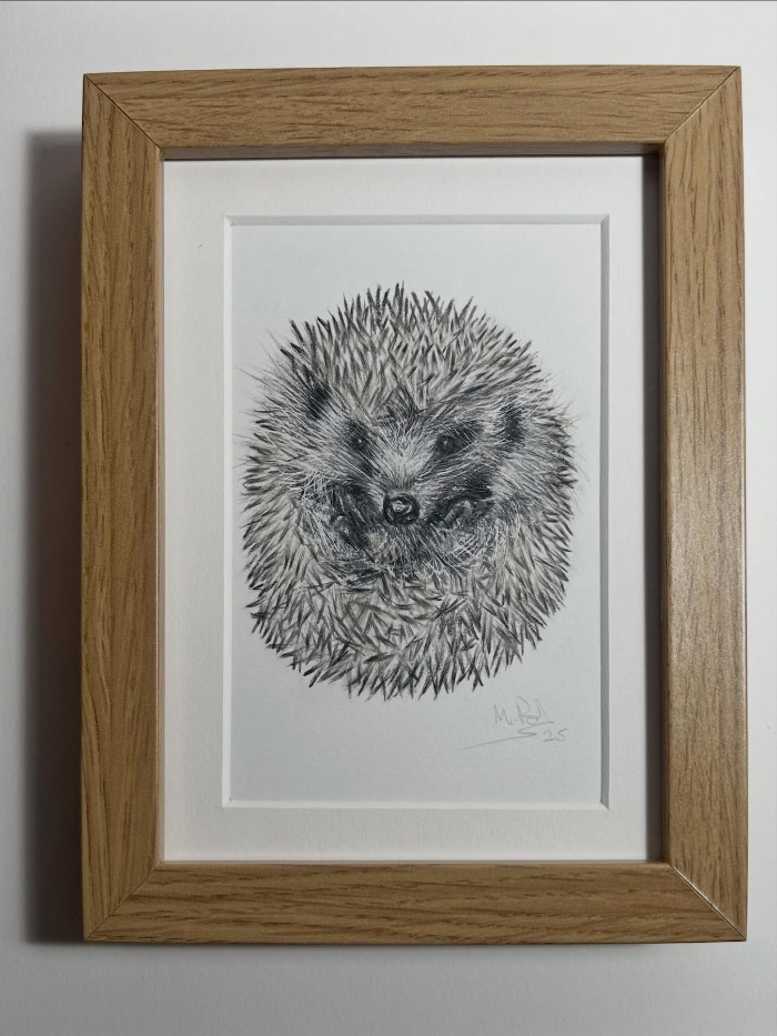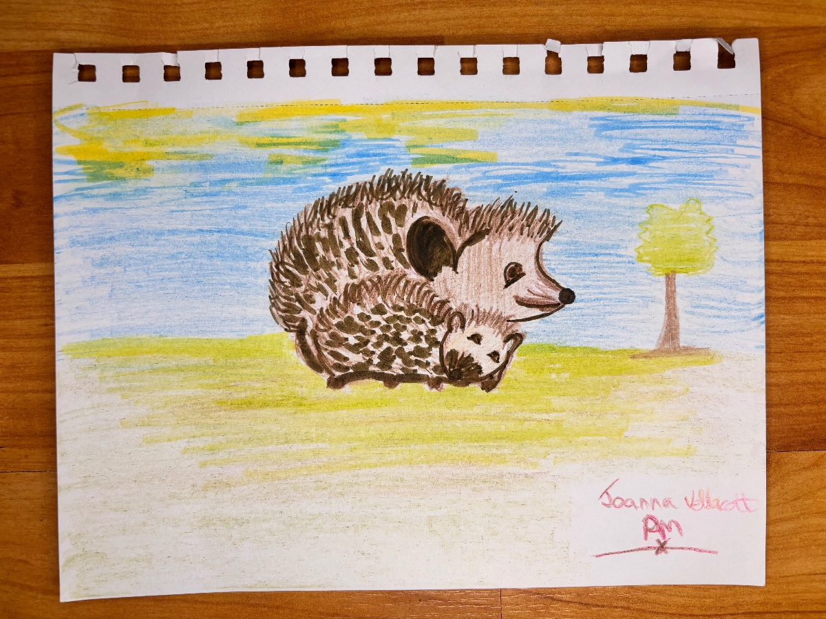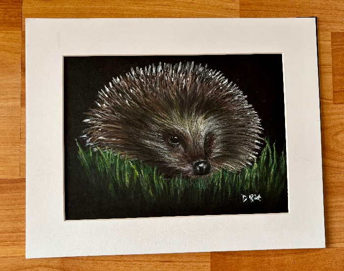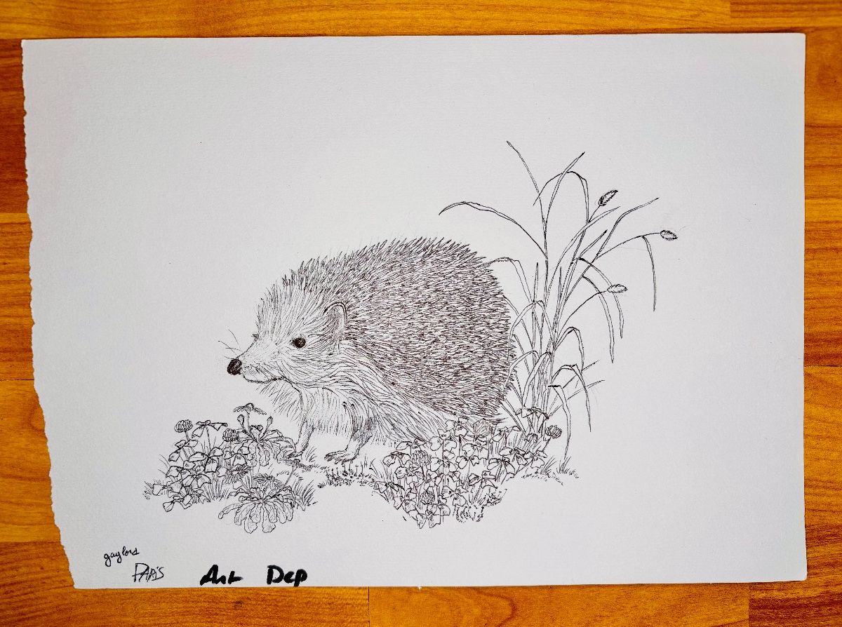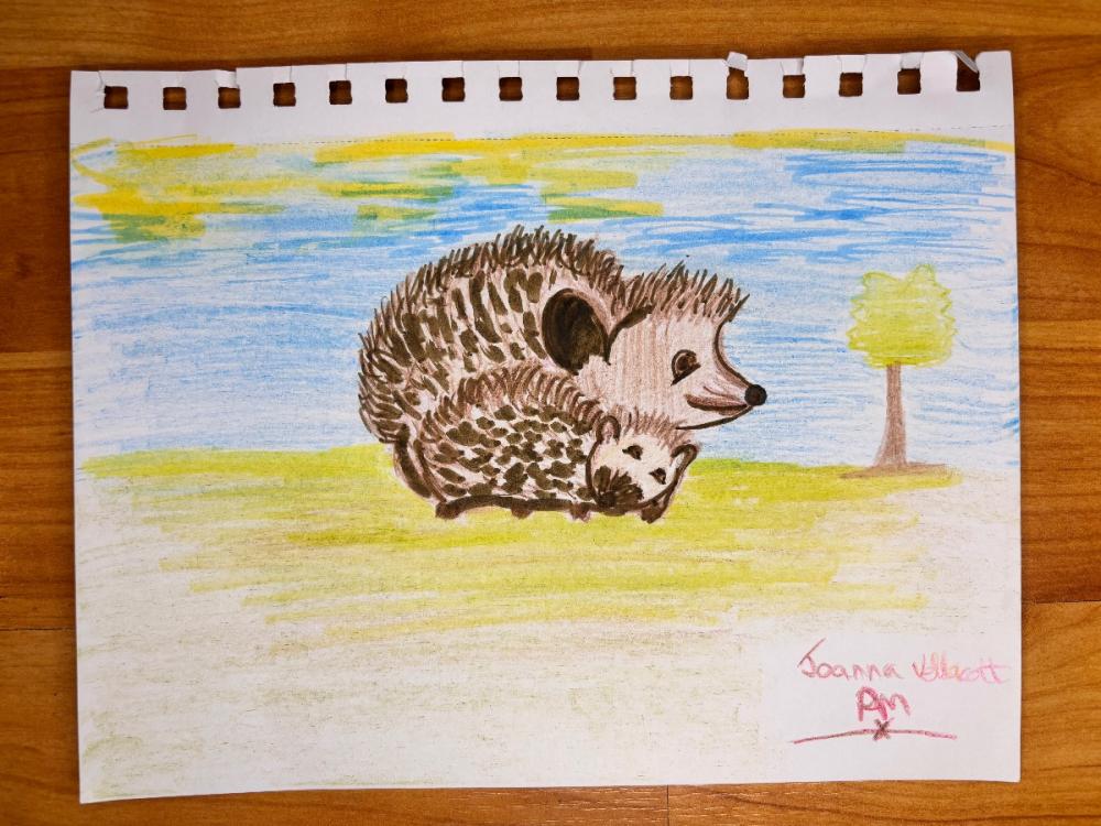 Hogdoodle by author & artist Sarah Glover. Sarah was inspired by one of the baby hedgehog cared for by Hope for hedgehogs for her drawing. Sarah can be found on Facebook and instagram with more of her beautiful artwork.