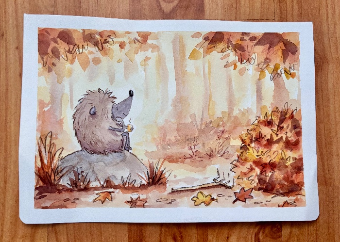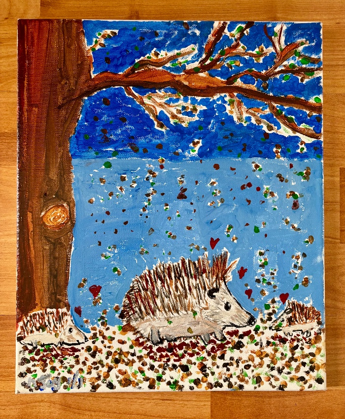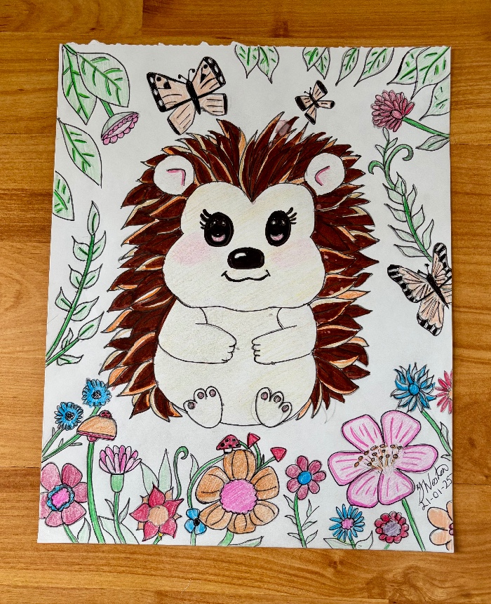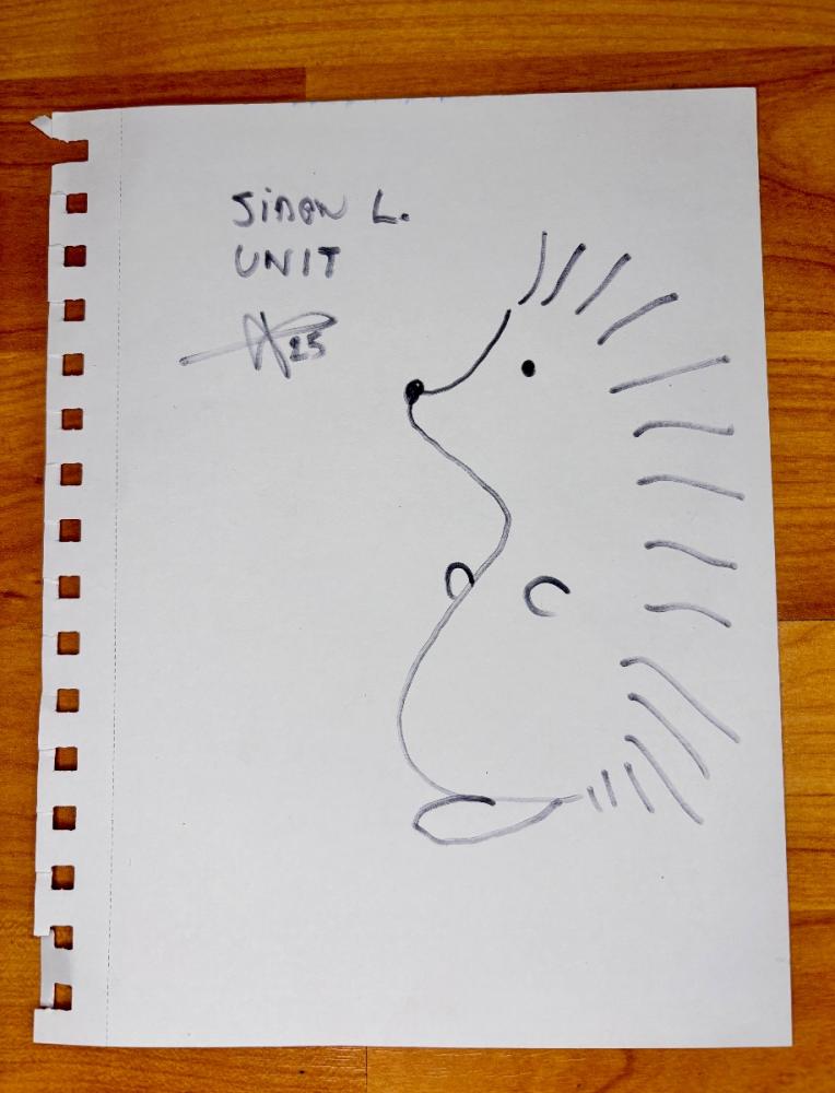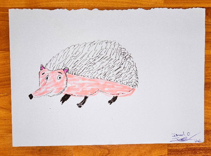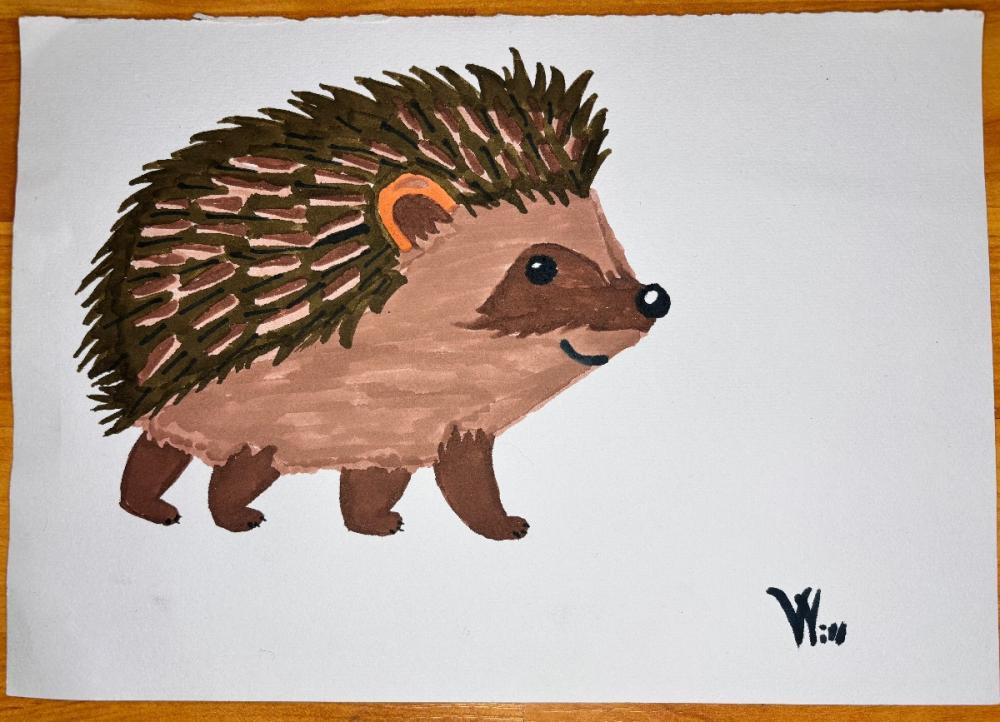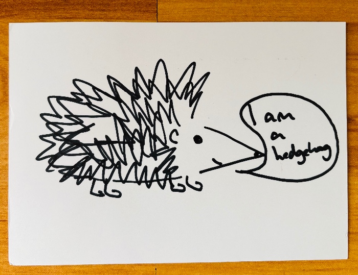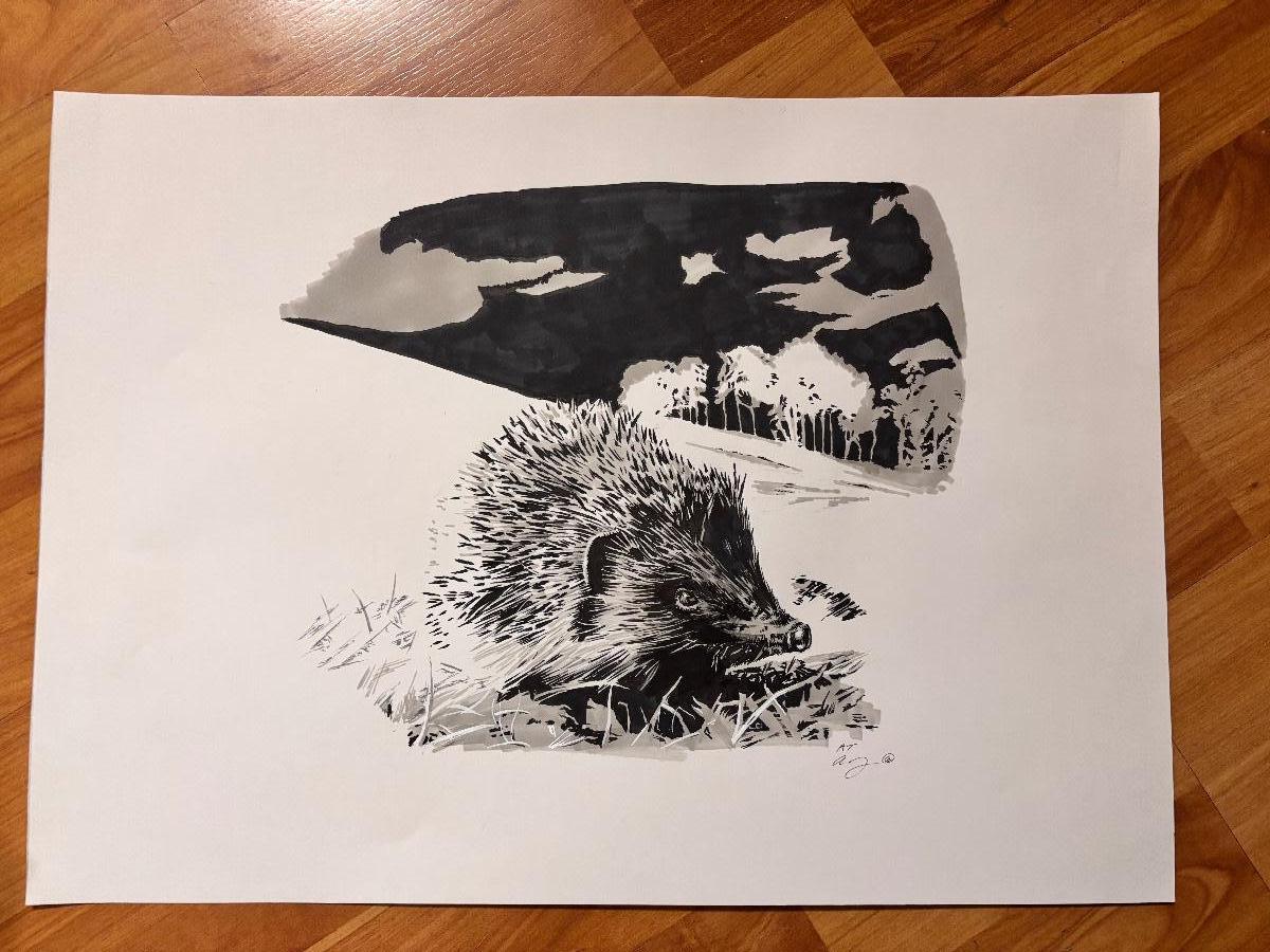 Hogdoodle by author & artist Sarah Glover. Sarah was inspired by one of the baby hedgehog cared for by Hope for hedgehogs for her drawing. Sarah can be found on Facebook and instagram with more of her beautiful artwork.