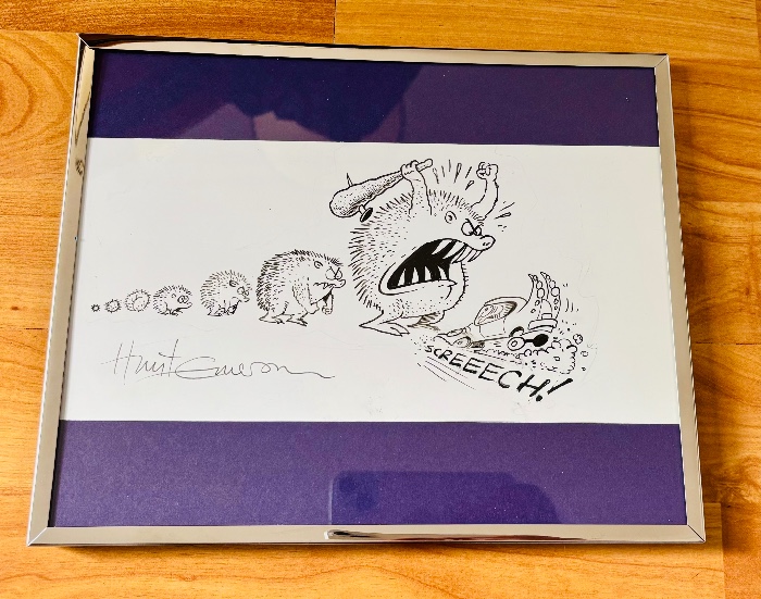 Hunt Emerson is a well published comic artist and cartoonist. His career took off in the 70’s. His work includes drawing cartoons for the Beano!
