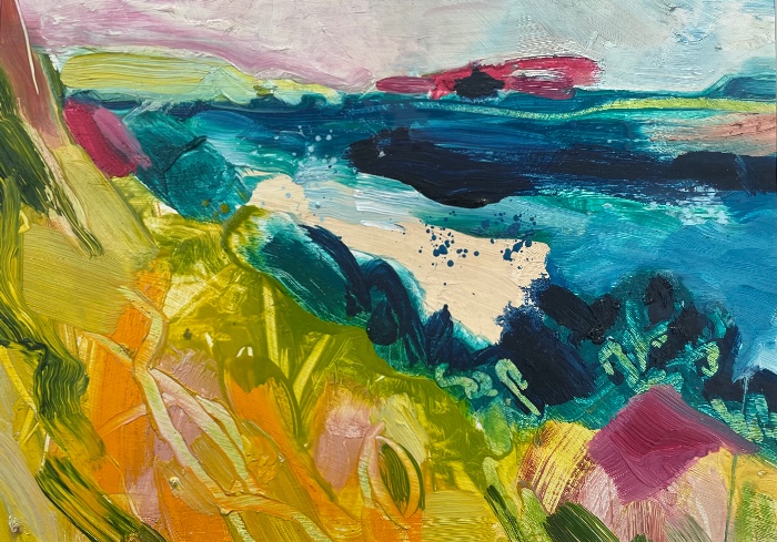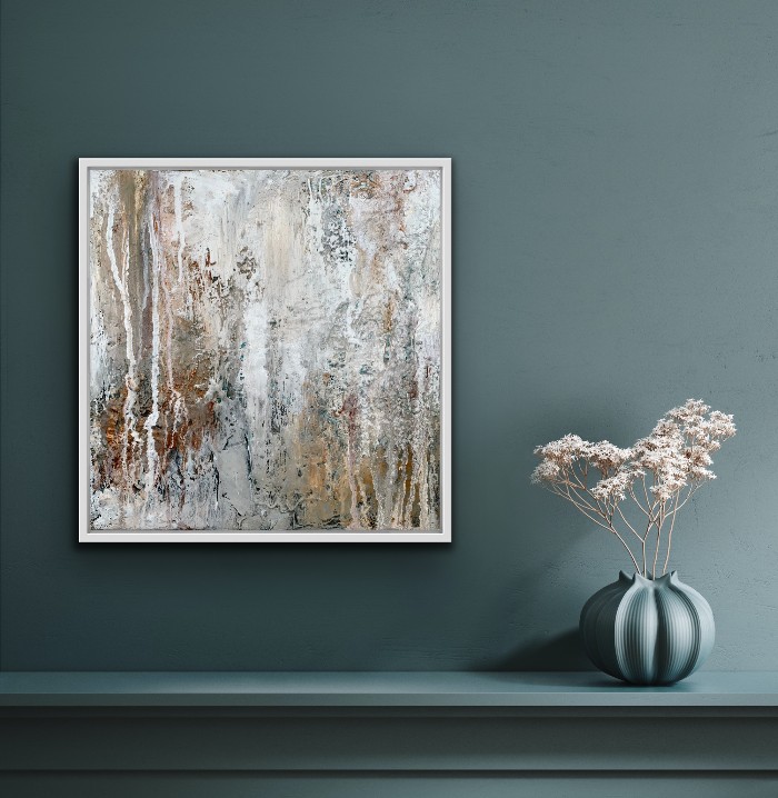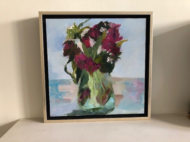 Oil on canvas board. Original art. Framed (white wooden box). 20cm x 26 cm.