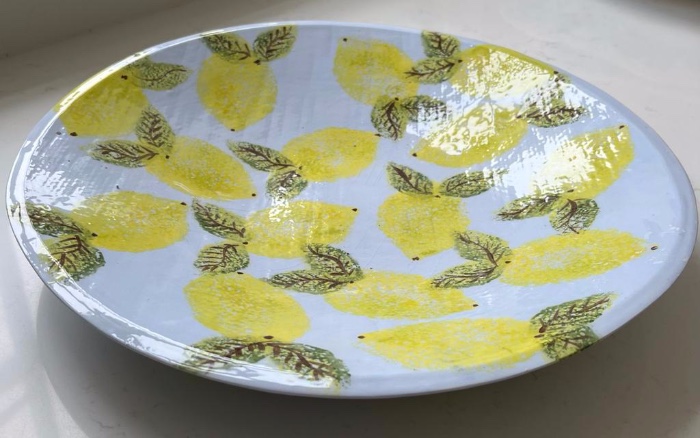 'Relaxation' is a unique ceramic sculpture measuring 25cms wide, 13cms tall, and 11cms deep. The textured surface is made up of blue and burnt umbre underglazes and the piece has been fired to stoneware so is suitable for indoor or outdoors.