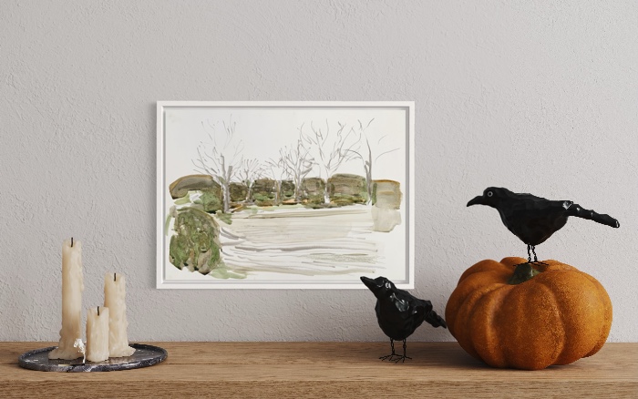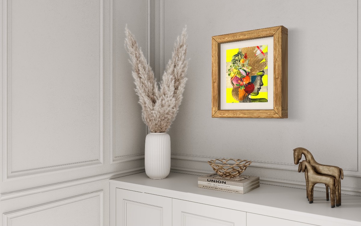 Framed limited edition giclee print from original artwork by Laura Gompertz. Hahnemühle German heavyweight etching textured 310gsm paper, 2/25. Framed size 21cm x 16cm with a chunky 4cm depth. Ideal for hanging on the wall or can sit unsupported.