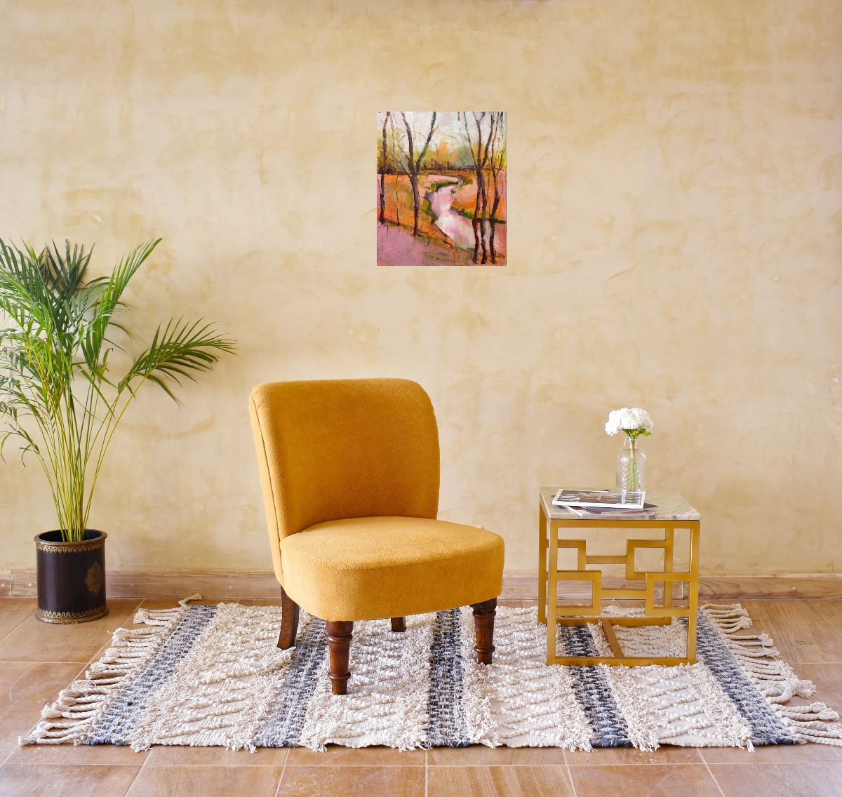 Oil on canvas board. Original art. 20cm x 26 cm. Framed (white, wooden).