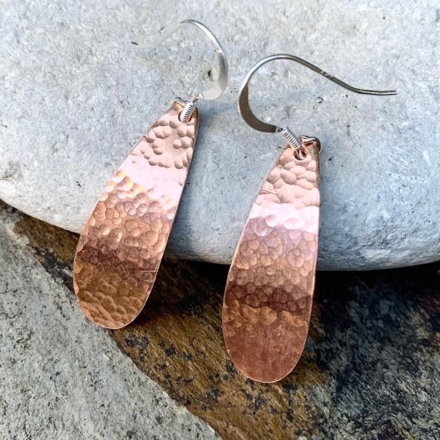 Handmade Copper Teardrop Earrings – Sterling Silver Ear Wires