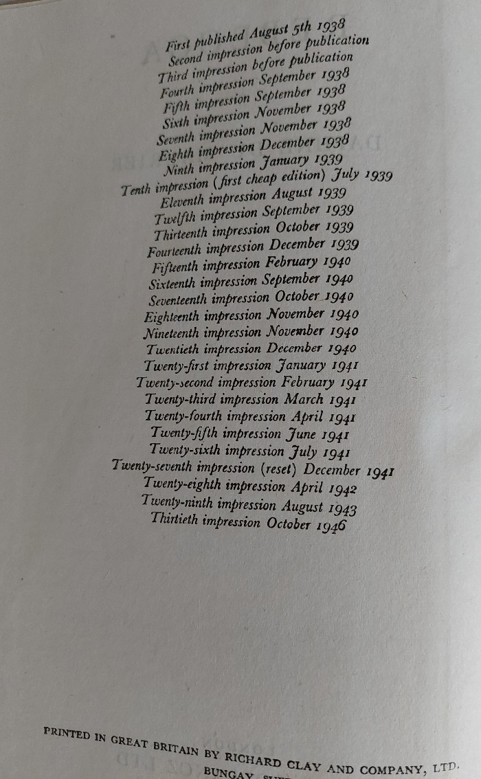 A 1947 reprint of Jamaica Inn by Daphne du Maurier, one of her most famous and much-loved Cornish novels. Hardback in dust-wrapper, with chips and foxing to the dust-wrapper. The overall condition is Good Plus.