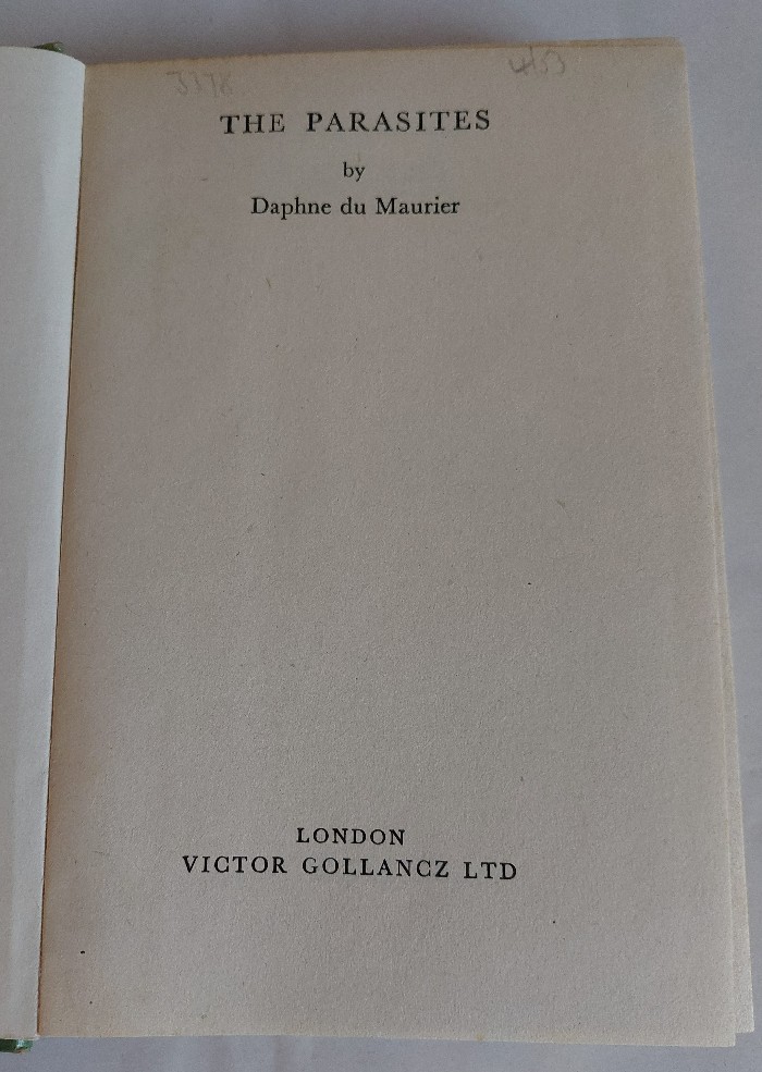 A 1951 ‘First Cheap Edition’ of The Parasites, Daphne du Maurier’s most autobiographical novel, about the Delaney’s, a theatrical family. Hardback in dust-wrapper. The dust-wrapper has discolouration to the spine and a small hole to the front. The page edges are discoloured. Overall, Good Plus condition.