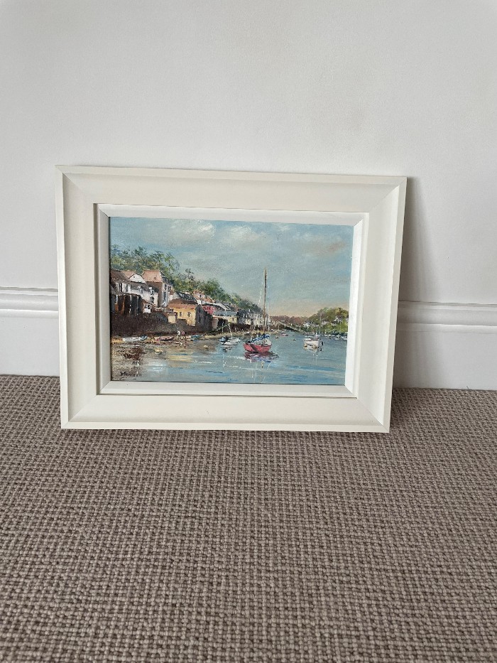 Beautiful wood framed oil painting of the Fowey Estuary. Painted by artist Diane Peirson.