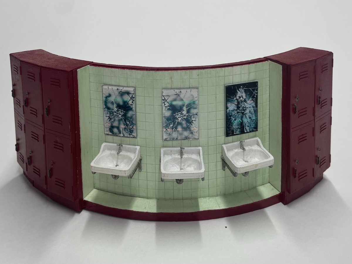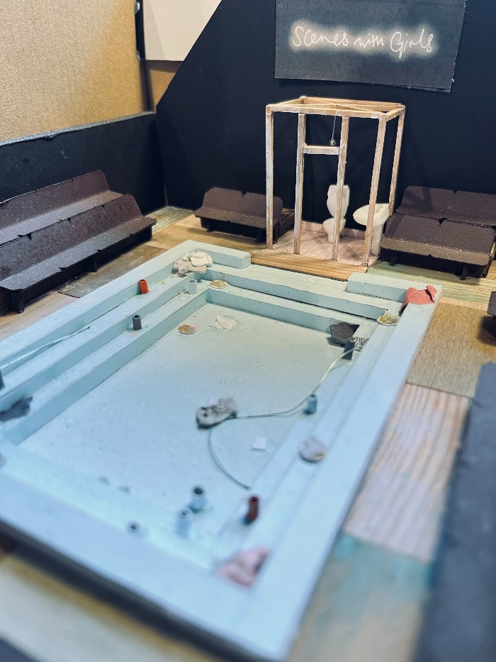 1:25 scale model of Scary Patty Bathroom set piece from 'Stranger Things: The First Shadow', Phoenix Theatre London West End and Marquis Theatre on Broadway NYC. Directed by Stephen Daldry and Justin Martin.