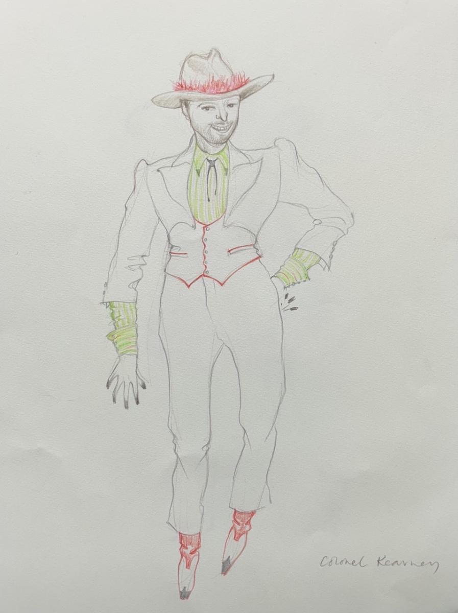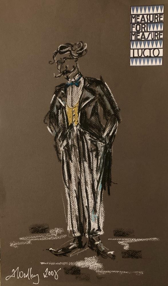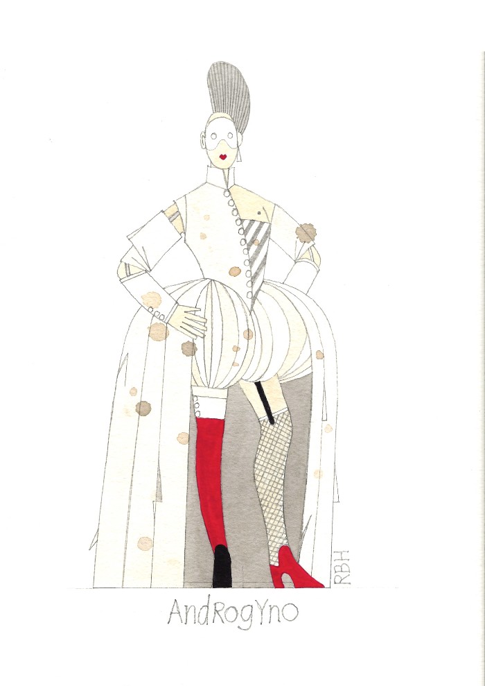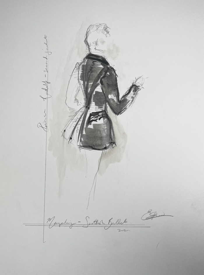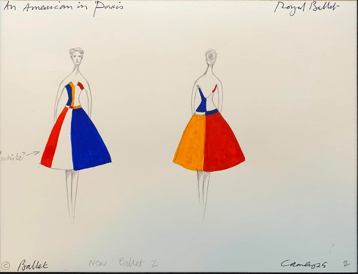 Hand drawn costume drawing for Christina McDermott in Twyla Tharp ‘s 'Mr Worldly Wise', Royal Ballet 1995.