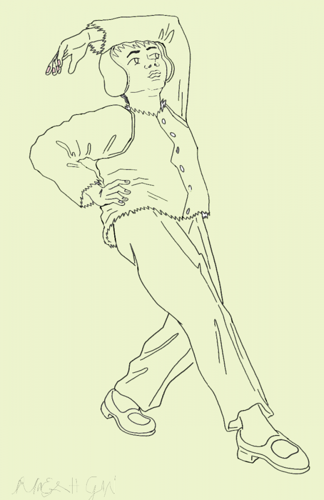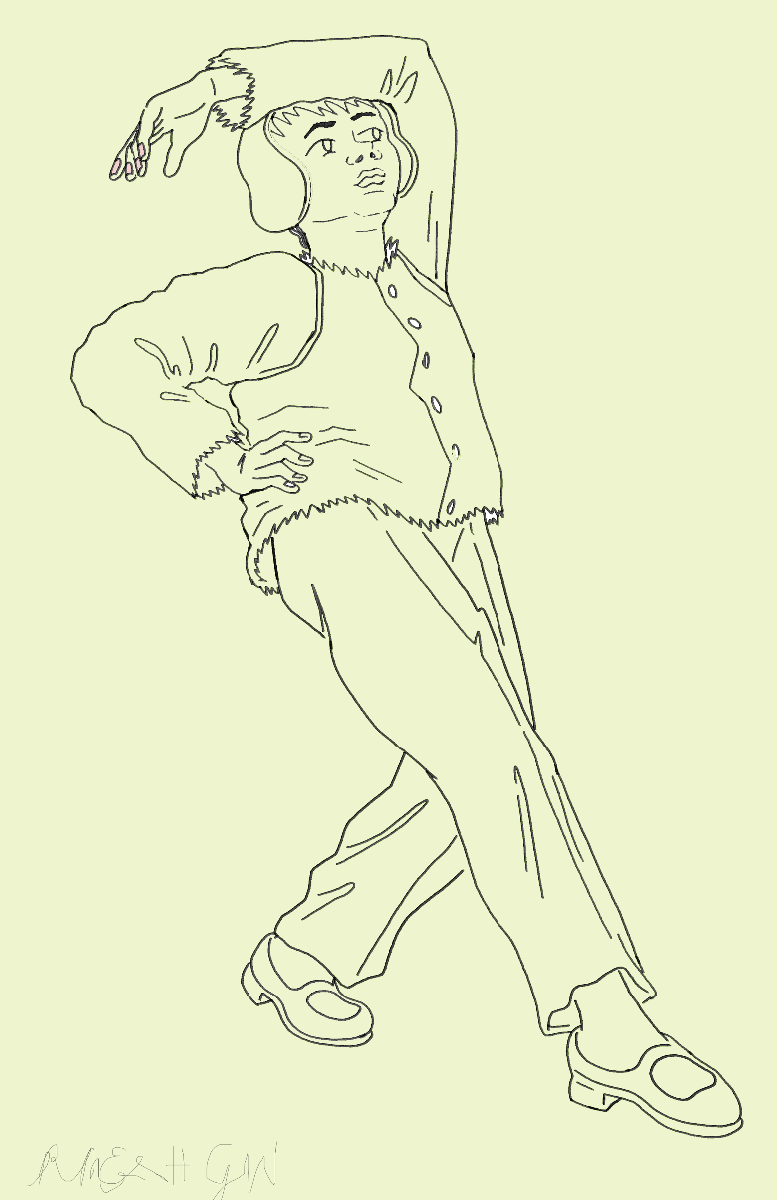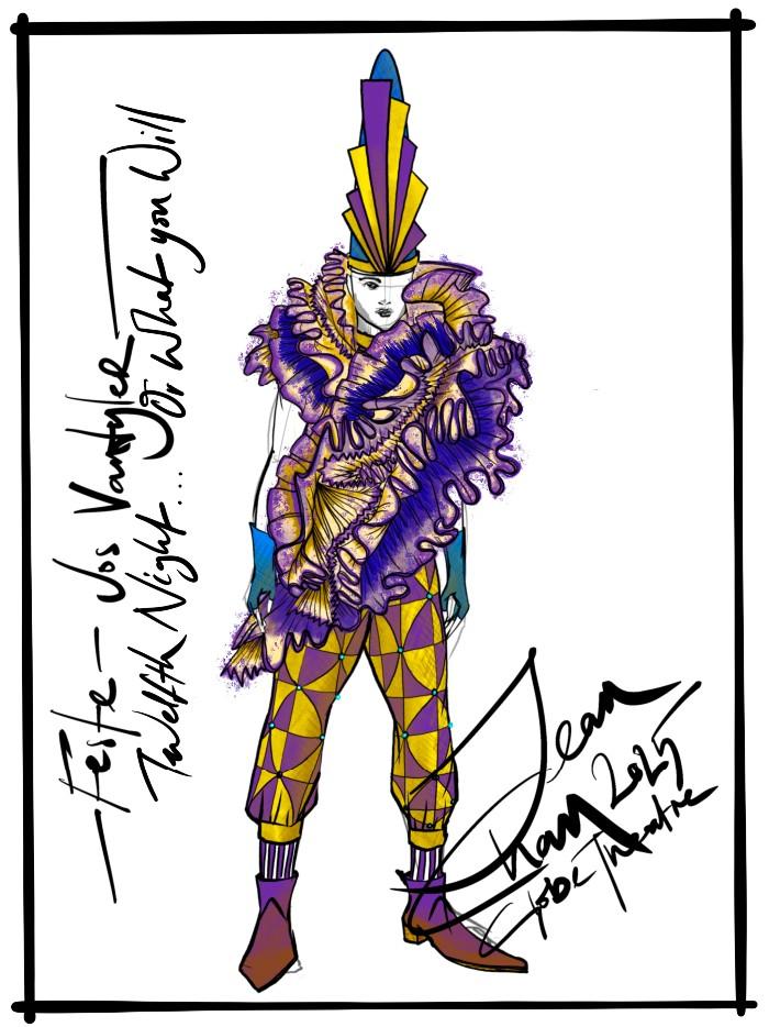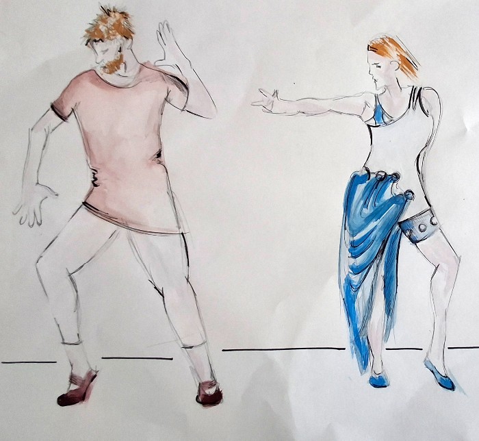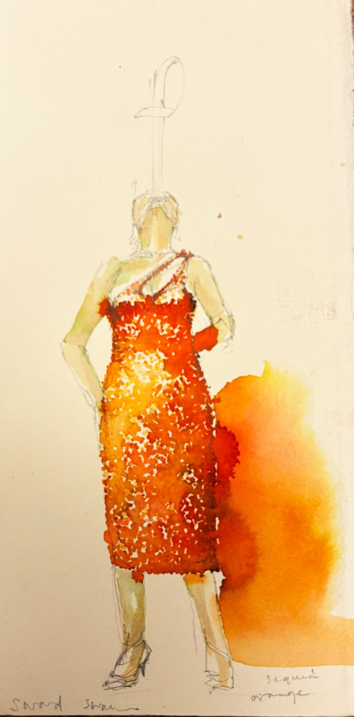 Hand drawn costume drawing for Christina McDermott in Twyla Tharp ‘s 'Mr Worldly Wise', Royal Ballet 1995.