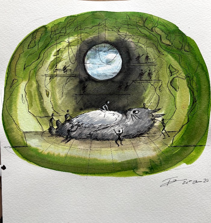 Katrina Lindsay: A3 Pencil sketchbook drawings. ENO, Terry Gilliam