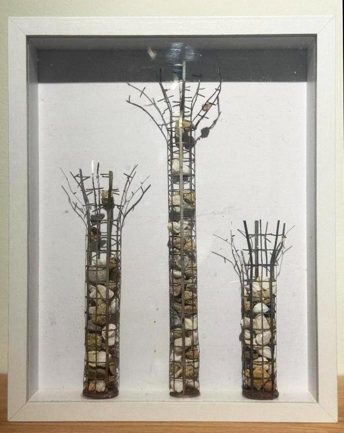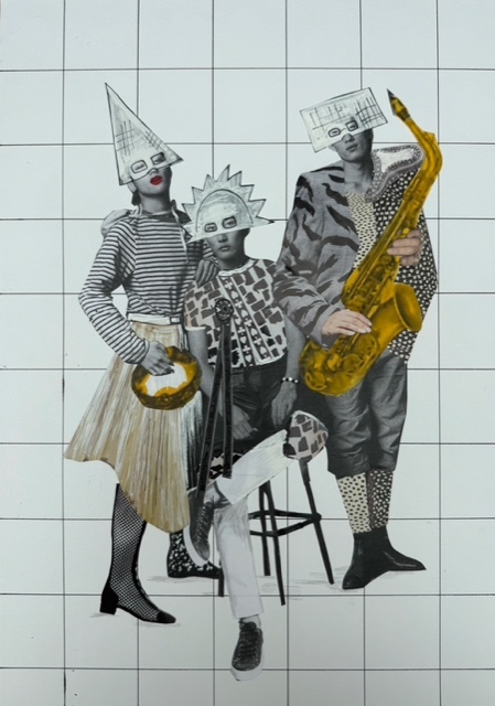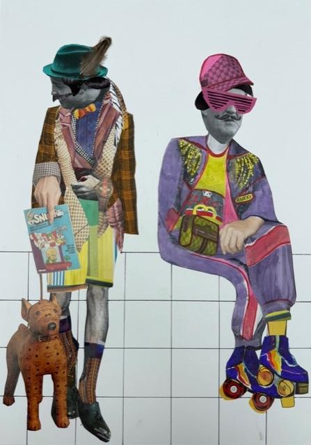 A3 Paper with acrylic paint, cardboard and painted figures. Framed. Postage cost not included.
