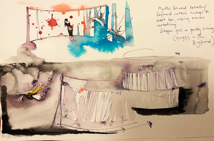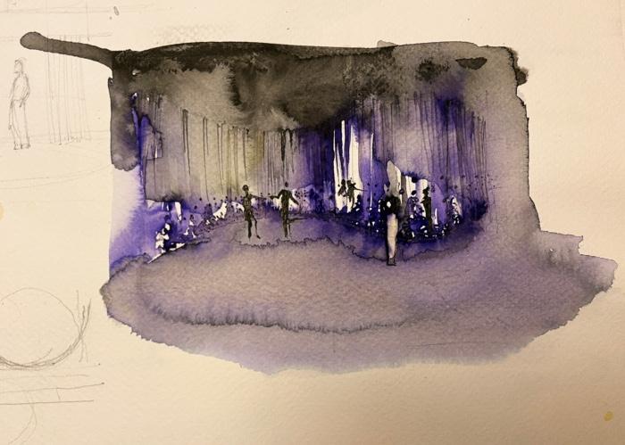 Miriam Buether: sketch and scale model piece from 'Inter Alia' (July 2025)