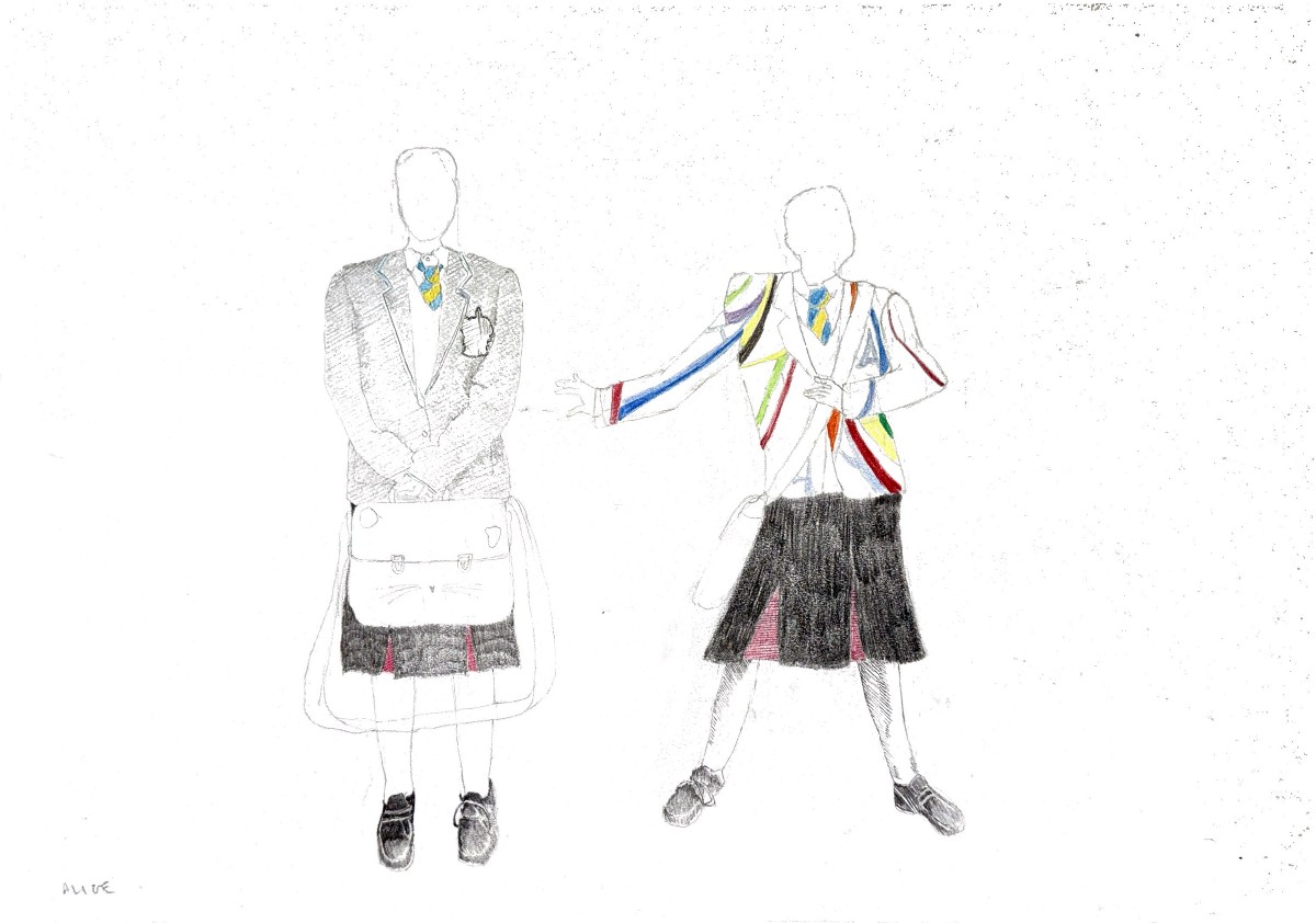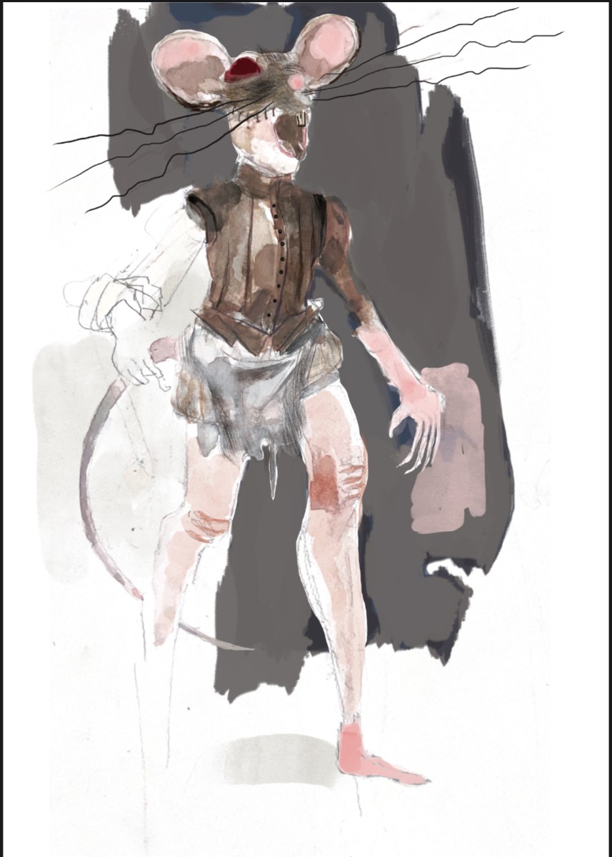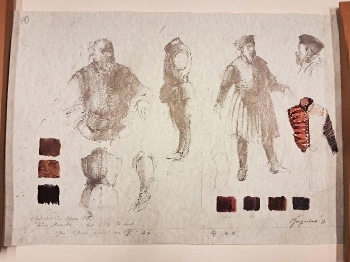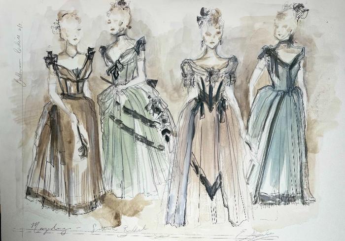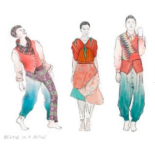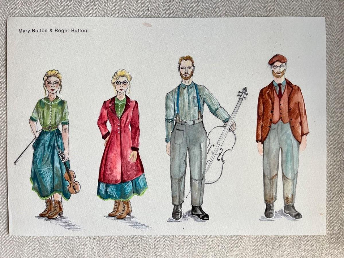 Costume renderings for The Bohemians from Longborough Festival Opera's production La Bohème.