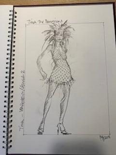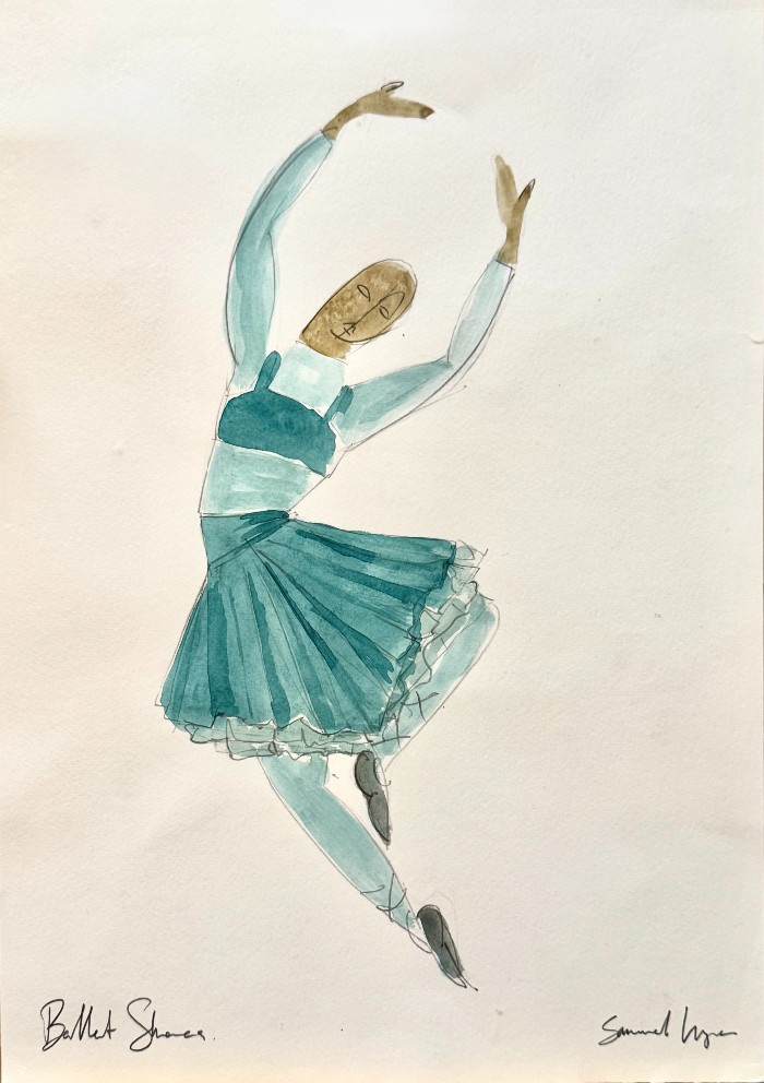 Hand drawn costume drawing for Sarah Wildor in Twyla Tharp ‘s 'Mr Worldly Wise', Royal Ballet 1995.