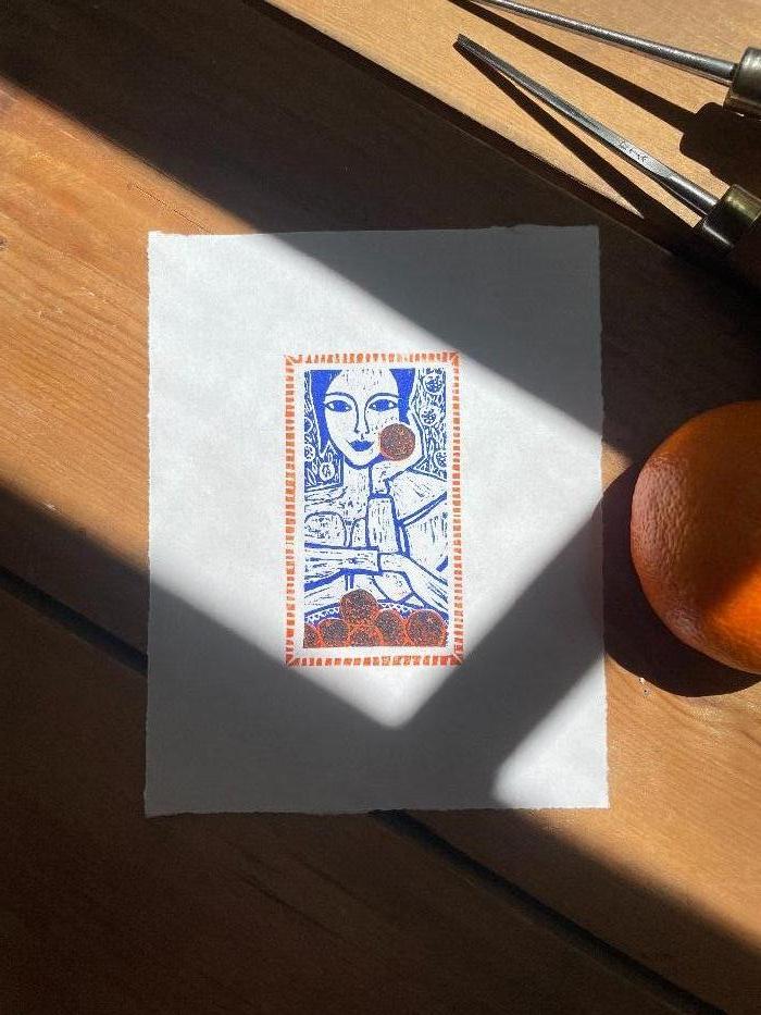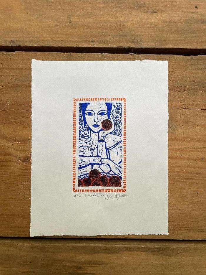 ‘Zainah’s Oranges’ is an original wood engraving, signed & printed on awagami paper using traditional oil based ink.