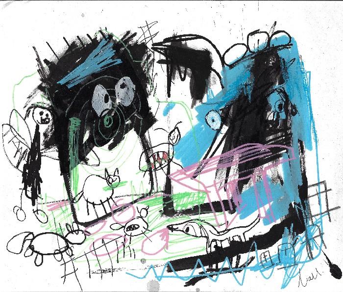400 X 280 mm Ink and pen on water colour paper Price of postage not included
