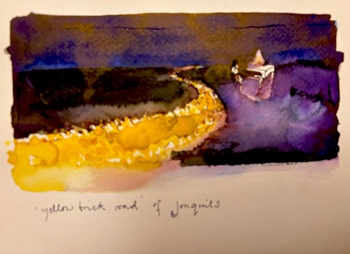 485 x 270mm Ink pen on watercolour Price of postage not included.