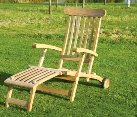 A classic traditional teak steamer chair with wheels and a footstool. This is a fabulous chair for relaxing in and the wheels make it easy to move around the garden. Winner to collect from Dorset. http://www.teakunique.co.uk