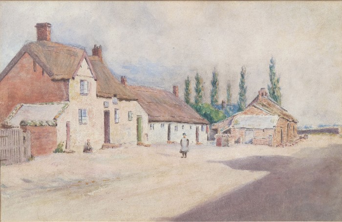 English School dated c. 1880, Summer Village Scene, original watercolour framed & mounted ready to hang, image dimensions: 7.75" x 12"
