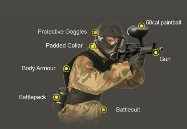 All equipment is included with the exception of paintballs. The first 100 paintballs per person must be paid for on booking so the relevant centre can then