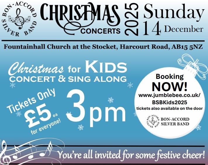 Come and join the Bon-Accord Silver Band in some festive fun tailored towards kids in a relaxed atmosphere. Dress up, run around, we really don't mind!