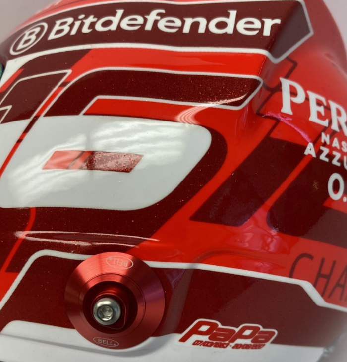 This Bell 1/2 scale mini helmet is an exact replica of Charles Leclerc’s 2024 Ferrari racing helmet used during 2024 F1 season. The detail and quality is incredible, and the helmet can be viewed tonight on display.