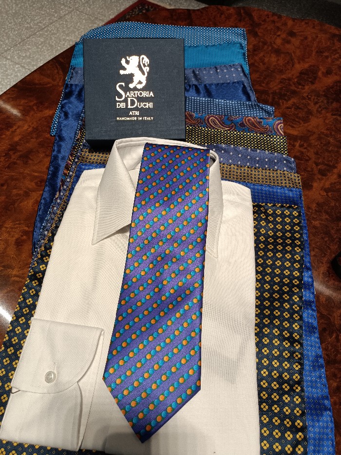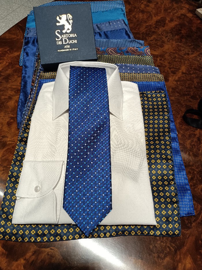Our ties are also all handmade chosen from the finest silks through the silk road to Italy.