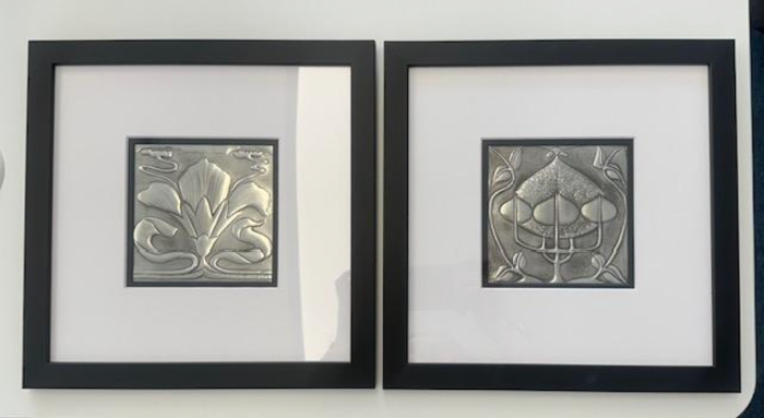 Two Stunning Art Nouveau-Inspired Framed Pewter Artworks by Judith Godden