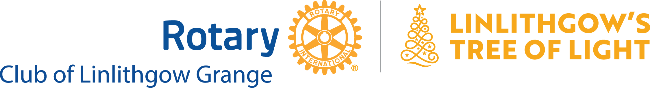 Linlithgow's Tree of Light is a festive project run by the Benevolent Fund of the Rotary Club of Linlithgow Grange, a recognised Scottish charity no. SC040390, to raise funds for charitable organisations working locally. The beneficiaries for this year's event are