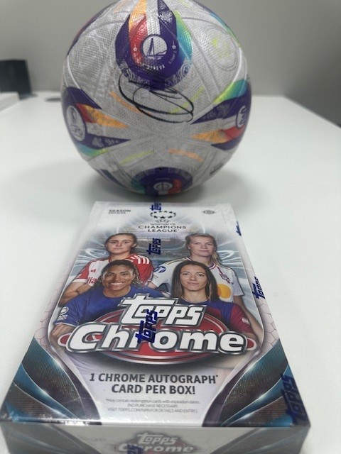 Euro 2025 Football signed by Barcelona & Spanish International Alexia Putellas, who is widely regarded as one of the best players in the world. Also included is a Topps Card Champions League Chrome Box.