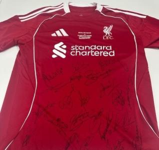 Signed Liverpool Legends Shirt from the game played at Stamford Bridge on the 11th October 2025 @ Stamford Bridge. Ian Rush, Phil Thompson, Sammy Lee, Pepe Reina, Martin Skrtel, Ryan Babel plus many more. A unique opportunity to own 1 of 10 shirts signed by the Liverpool Team on the day of the game.